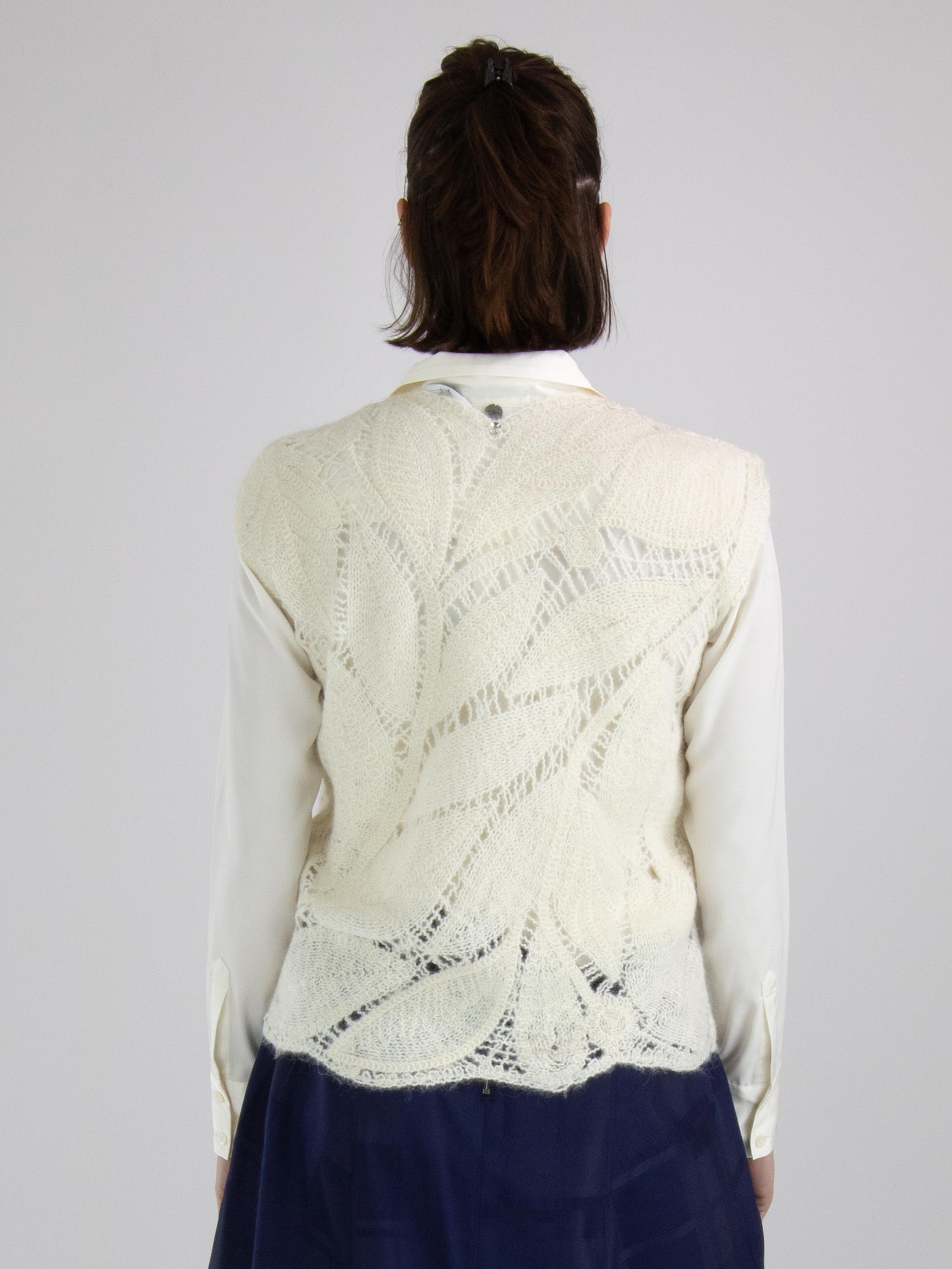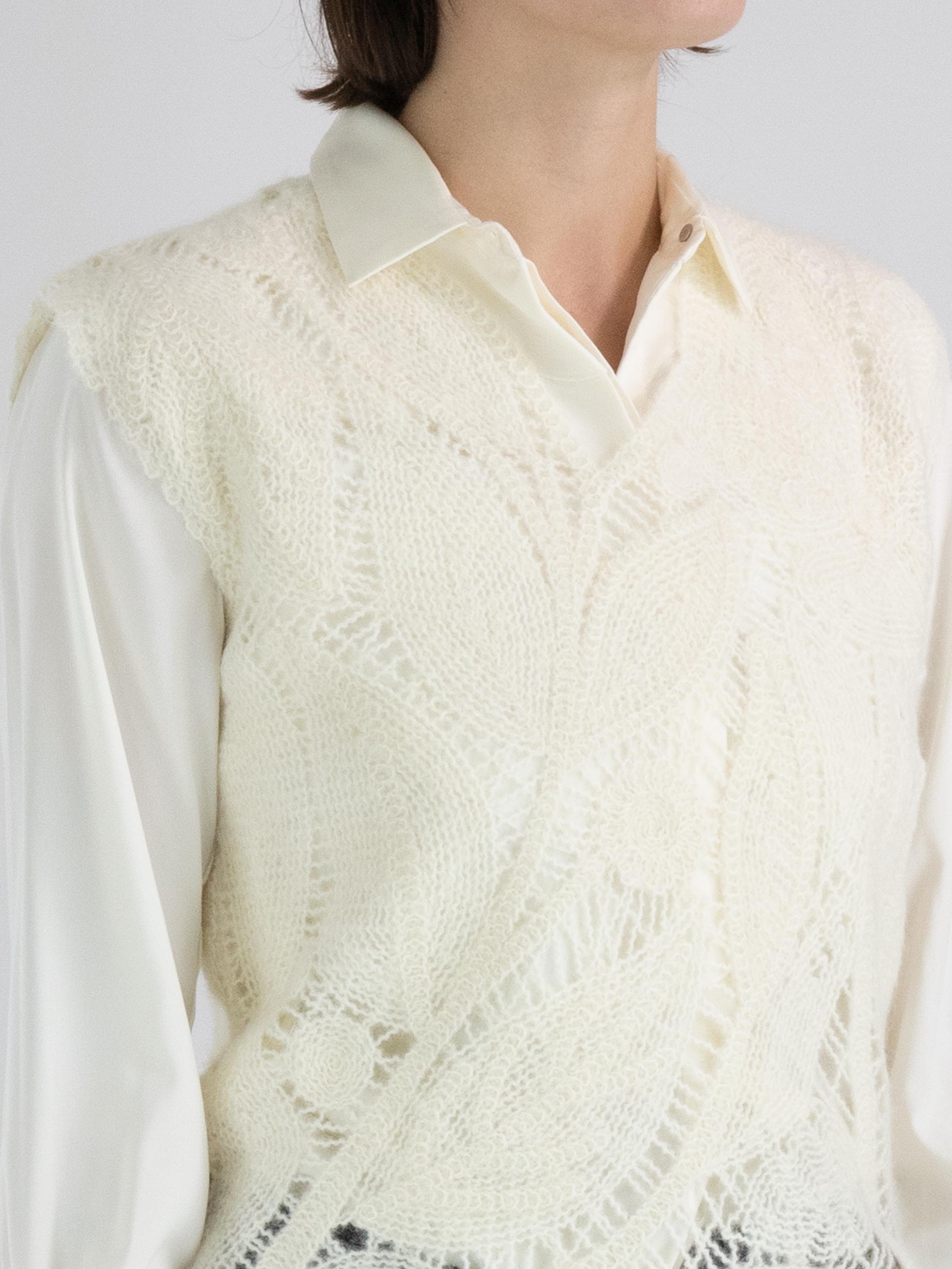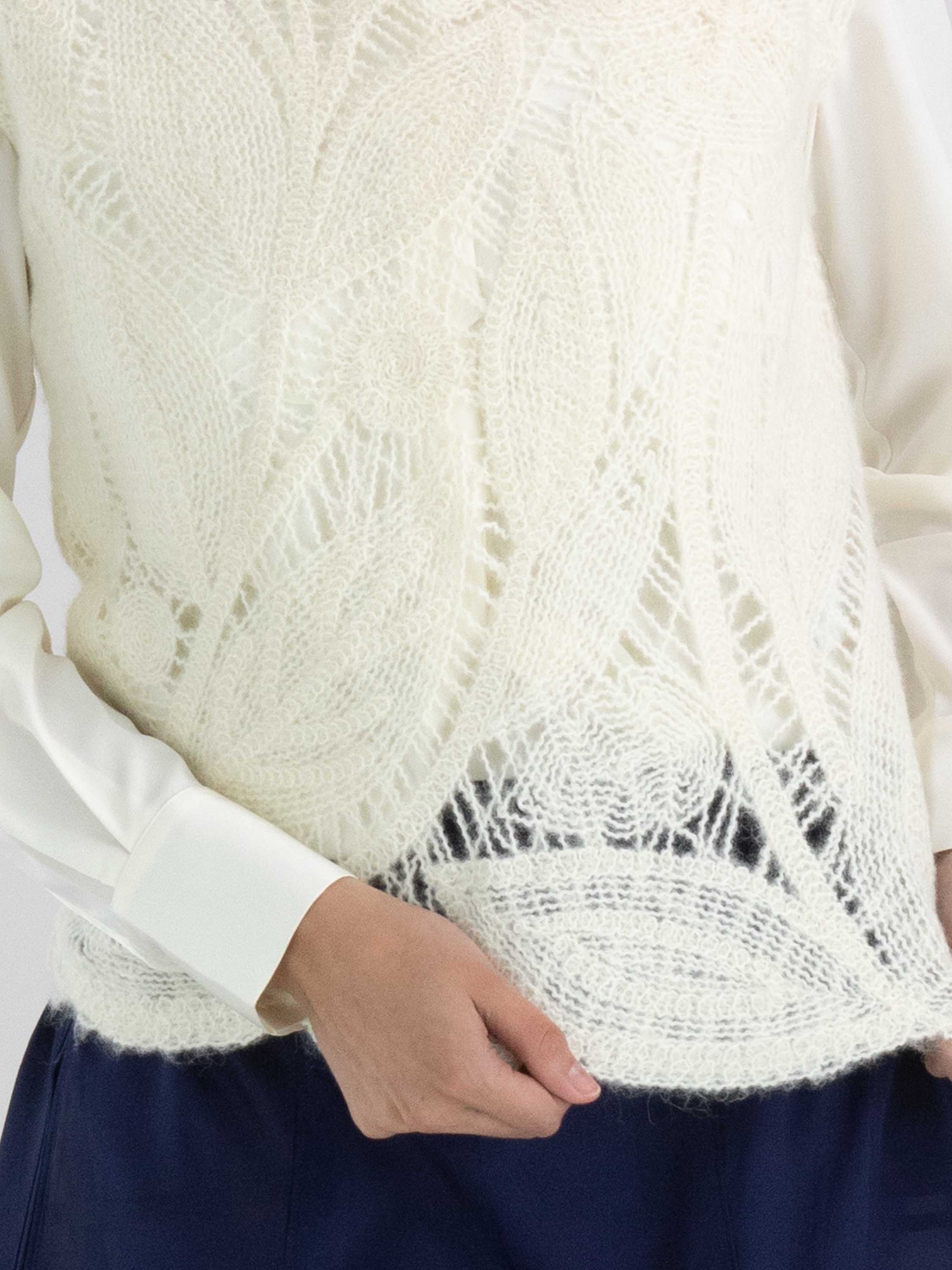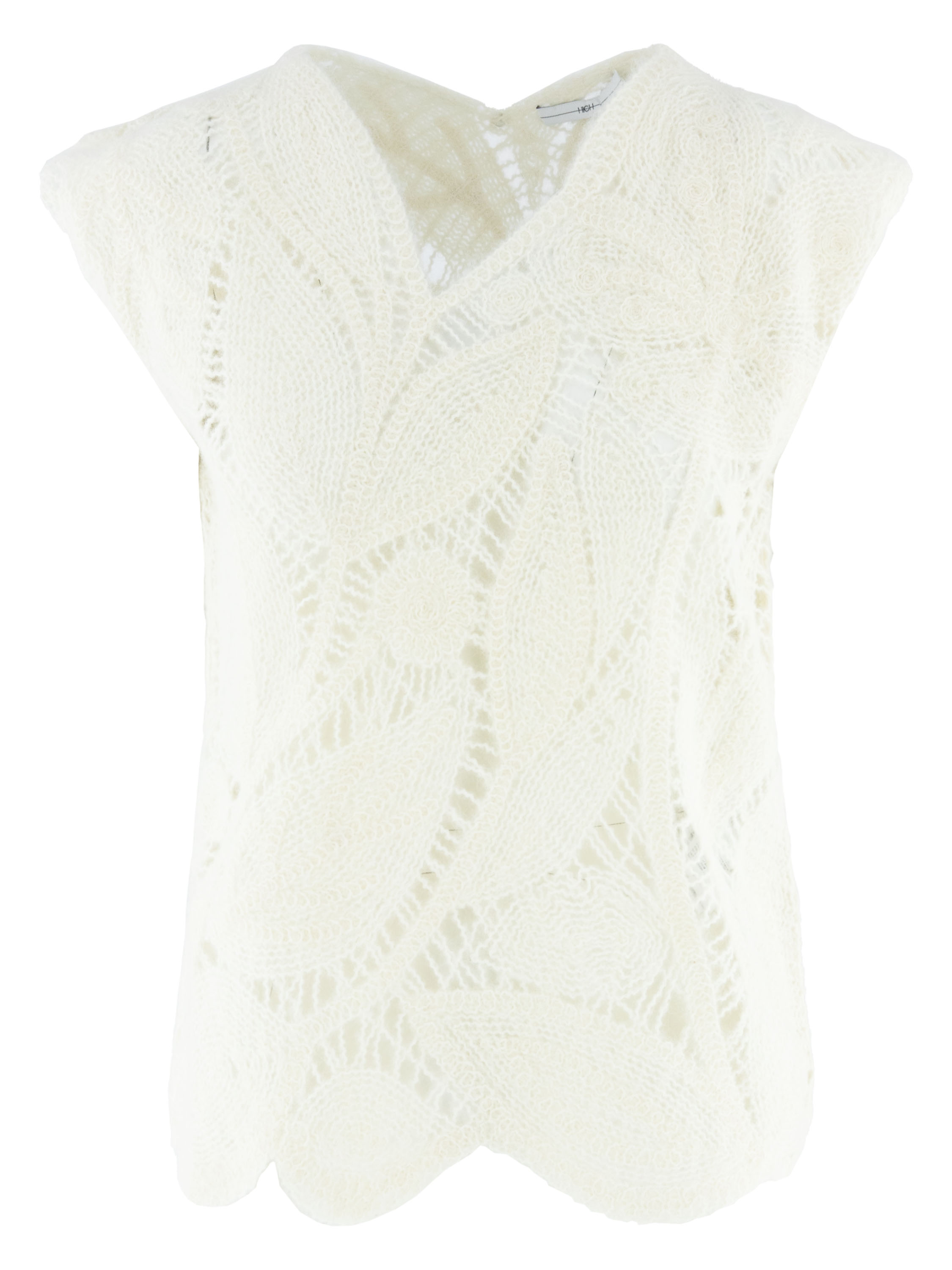 Ein luxuriöses, offen gestricktes Top von High mit einem Blattmuster in Cremeweiß. Dieses Top kann von Hand gewaschen werden.