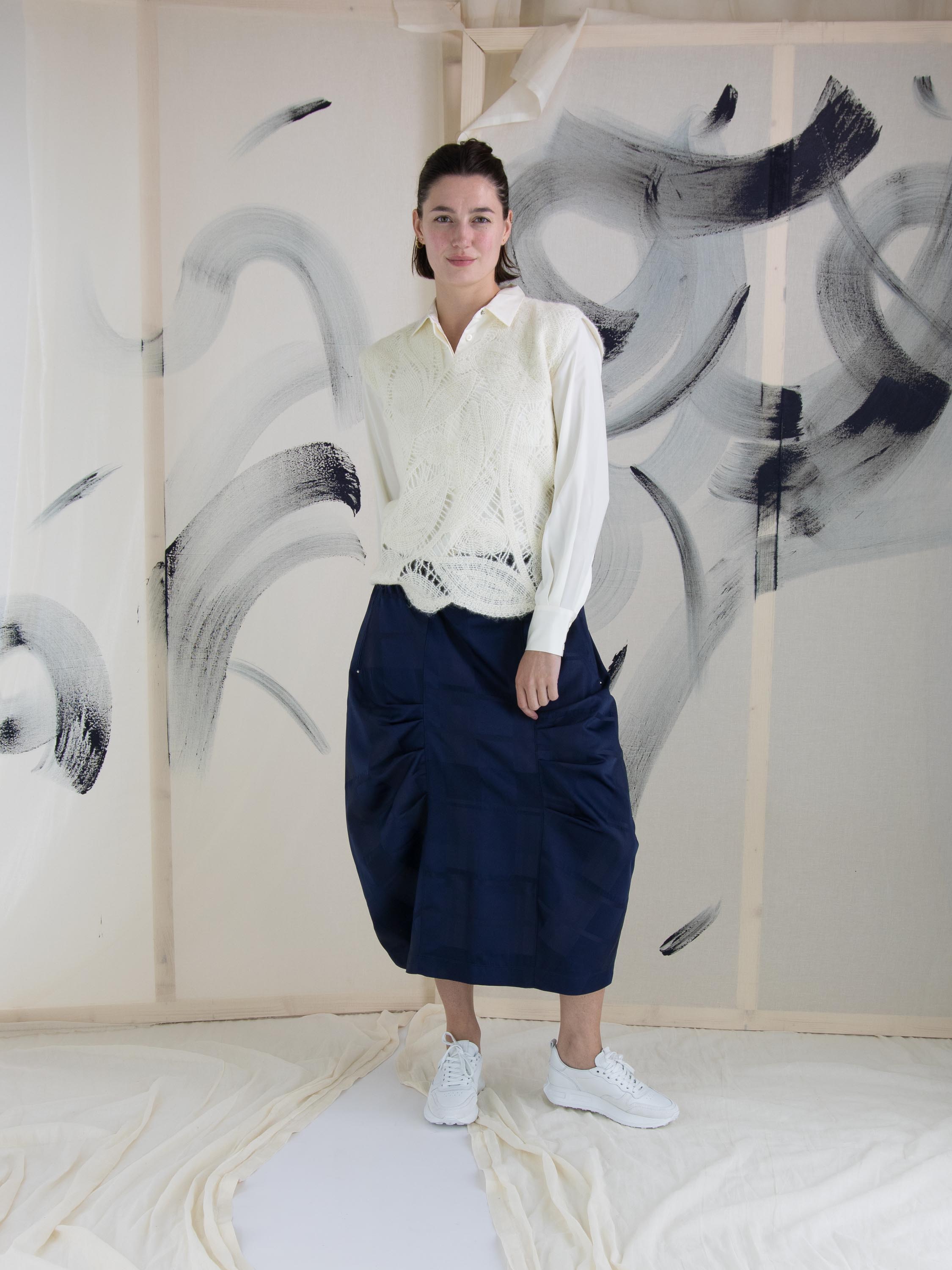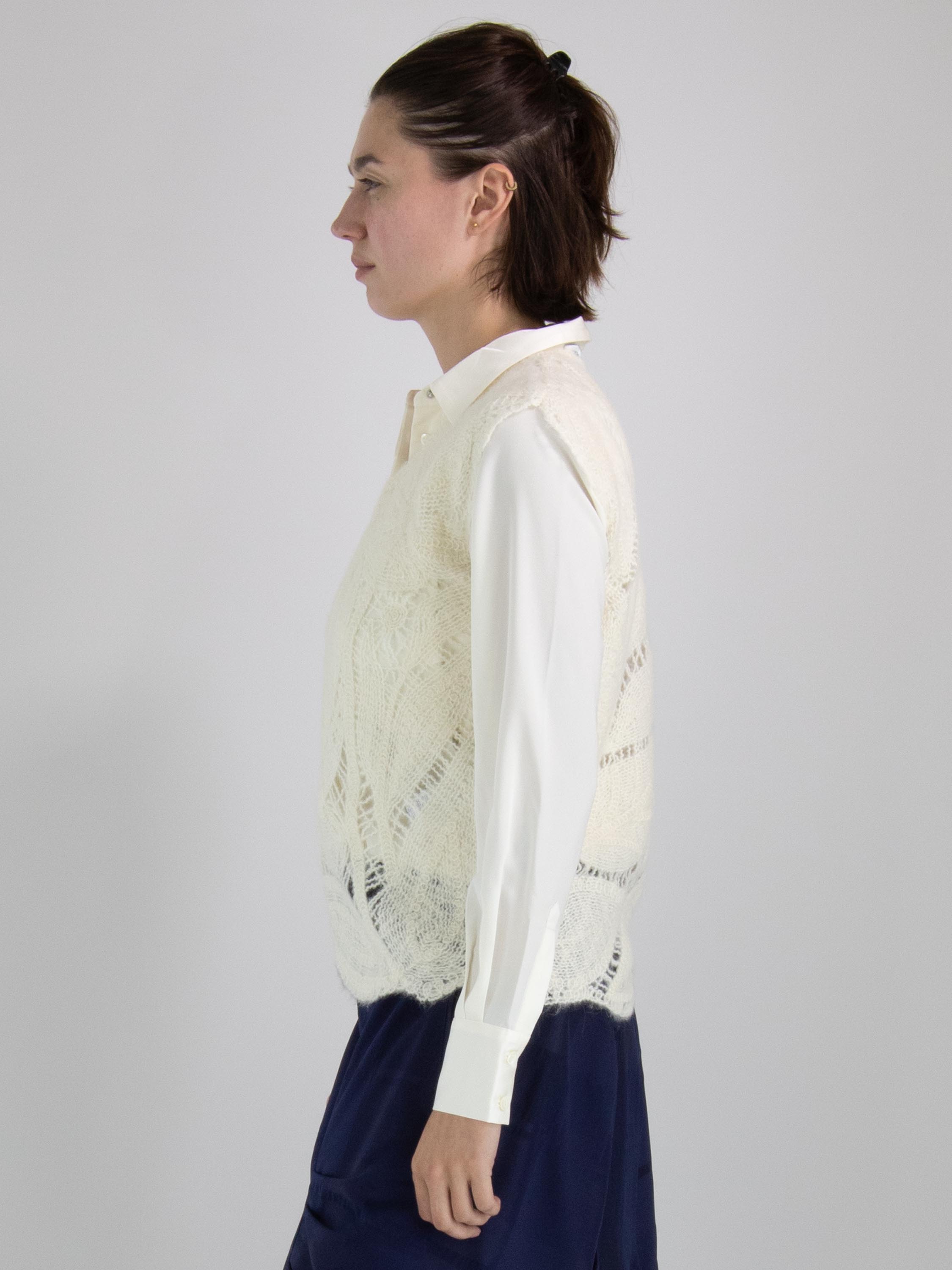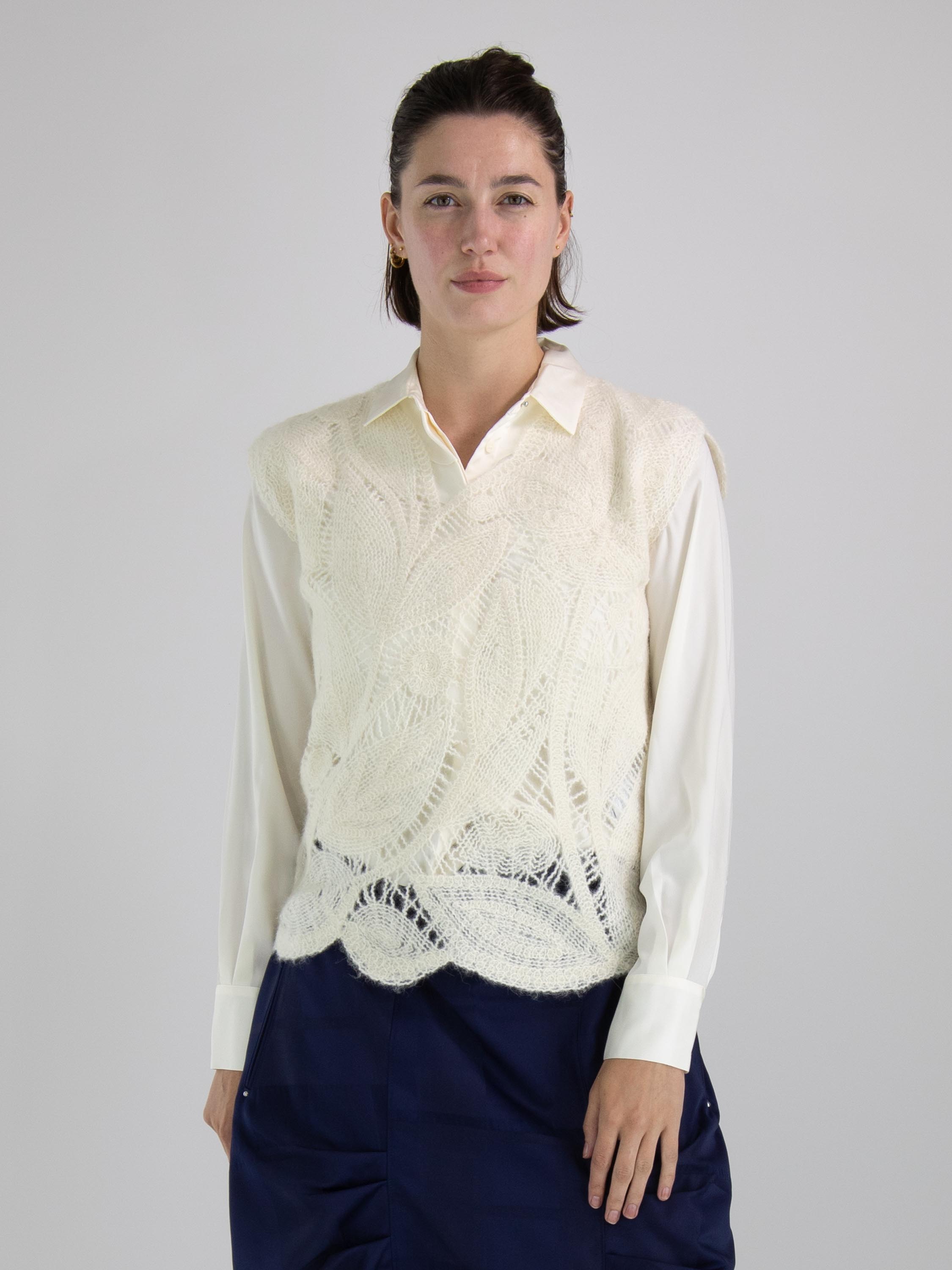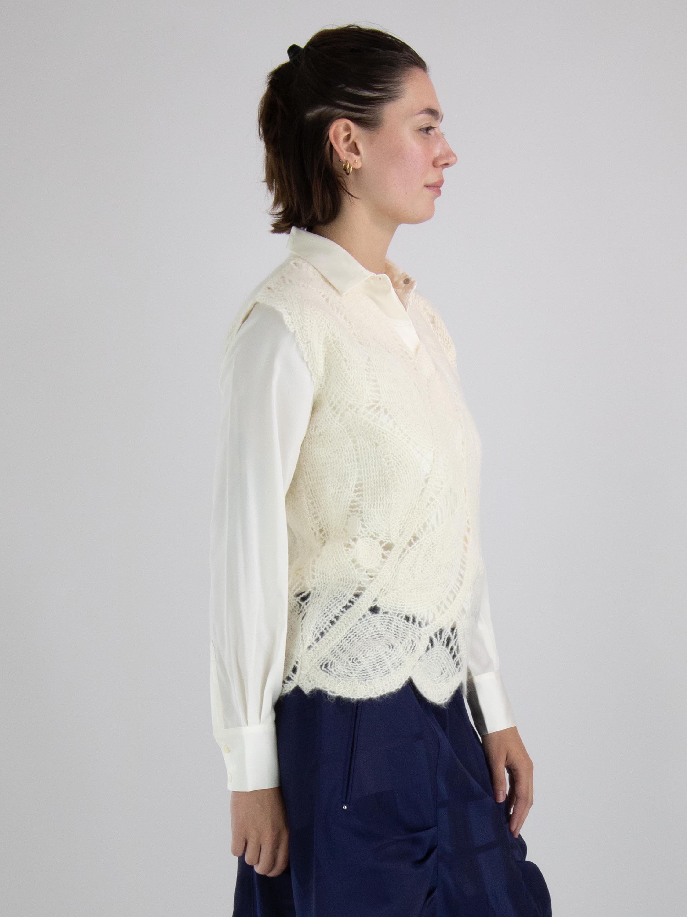 Ein luxuriöses, offen gestricktes Top von High mit einem Blattmuster in Cremeweiß. Dieses Top kann von Hand gewaschen werden.