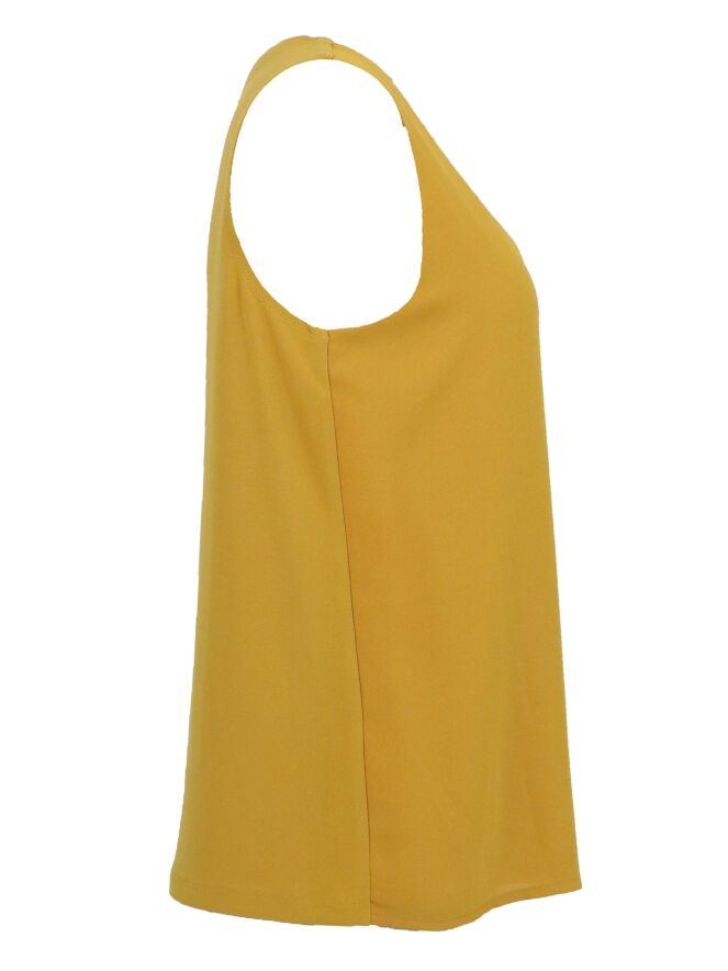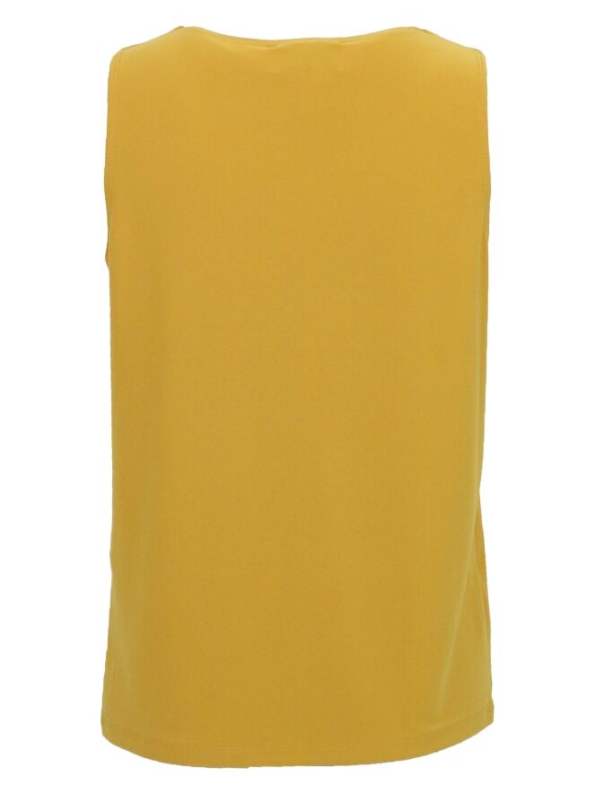 Ockergelbes Top der Designermarke Joseph Ribkoff. Der Top verfügt über einen tiefen Rundhalsausschnitt und ein Doppelgewebe an der Vorderseite. Dieses Top darf von Hand gewaschen werden.
