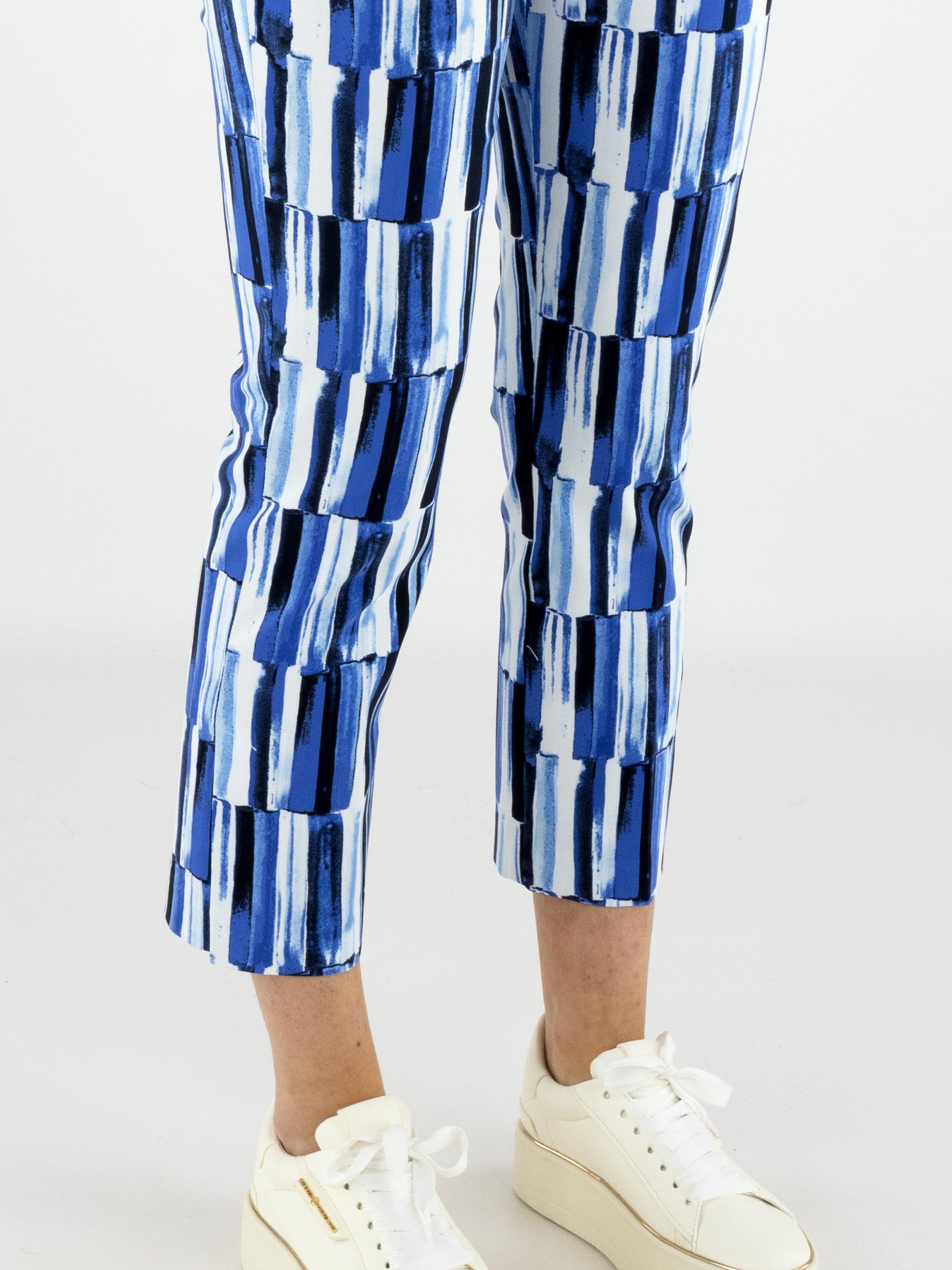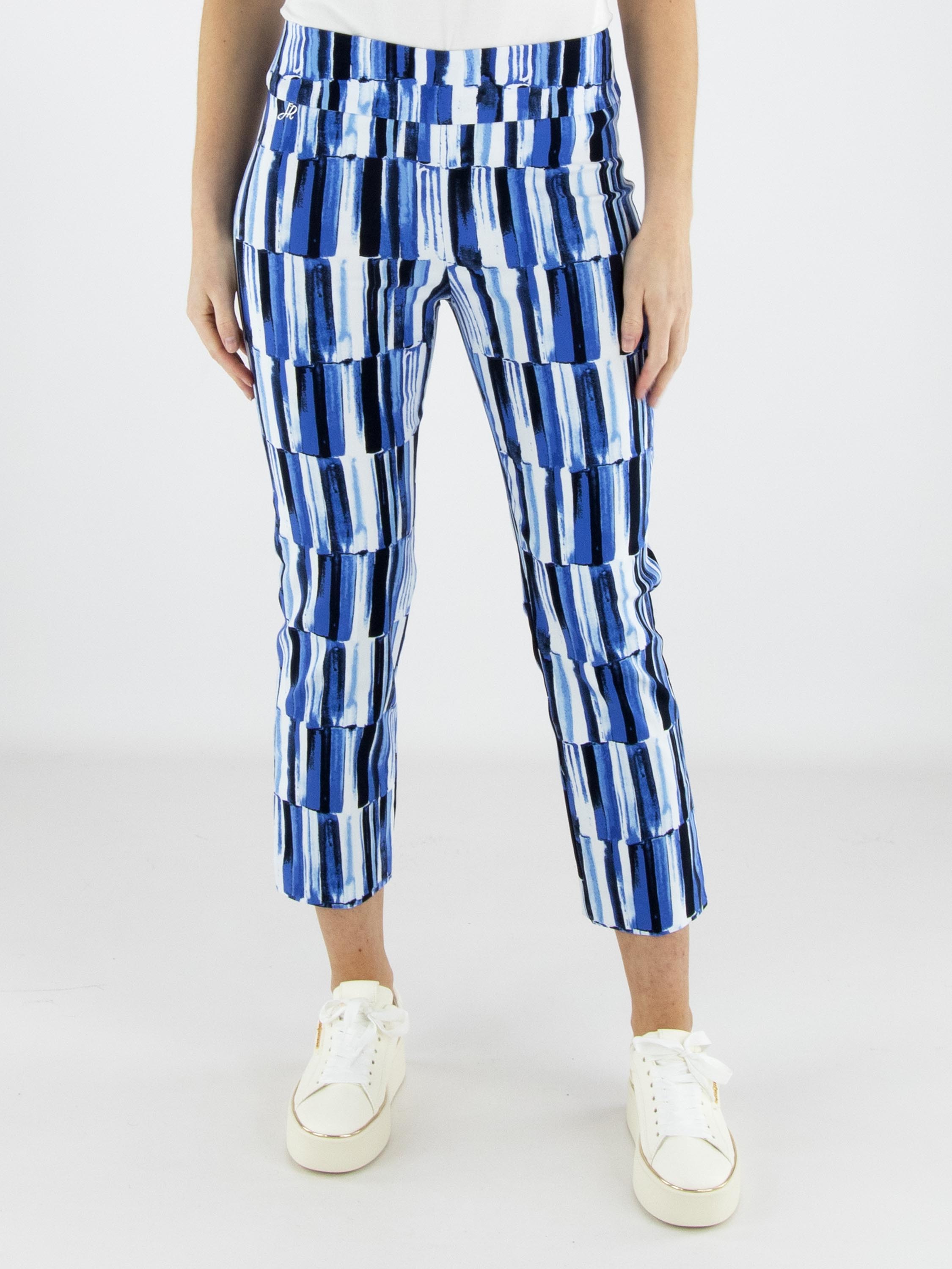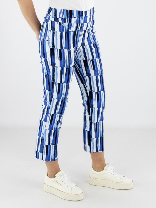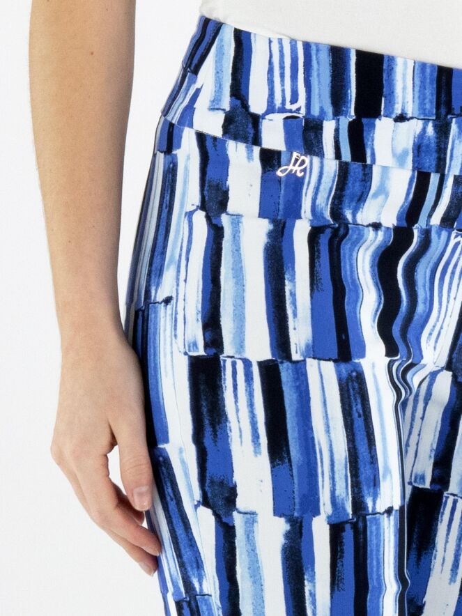 Hose von Joseph Ribkoff mit feinem Streifenprint in mehreren Blau- und Weißtönen. Der elastische Bund sorgt für eine bequeme und elegante Passform. Diese exklusive Designerhose sollte per Hand gewaschen werden.