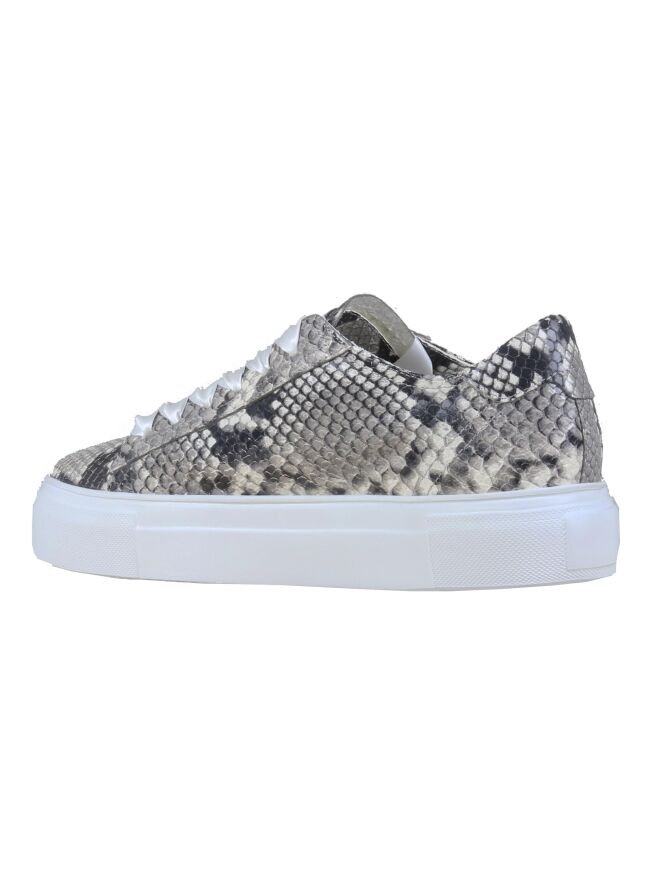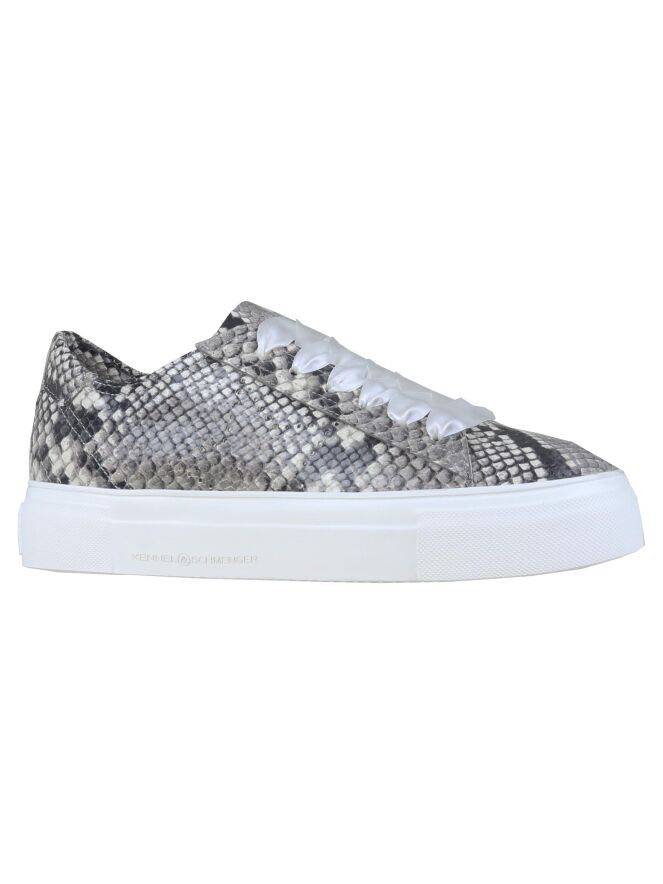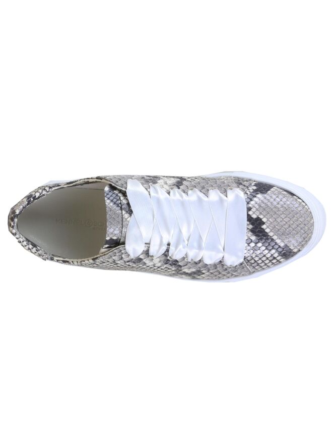 Sneaker der Schuhmarke Kennel und Schmenger K&S mit Schlangenprint in natürlicher Optik. Der Sneaker kommt mit Schnürsenkeln aus Mattsatin und einer sportlichen weißen Sohle. Die Innensohle ist herausnehmbar. Der Sneaker hat kein Innenfutter.