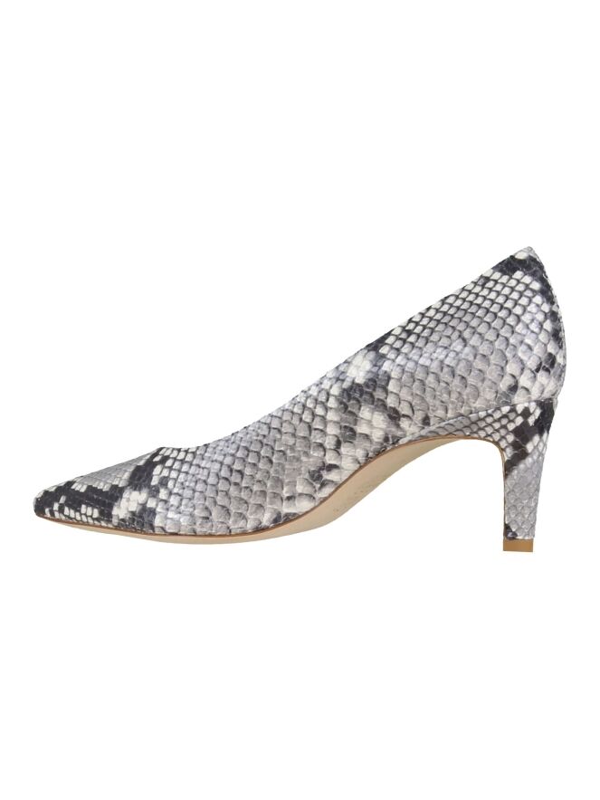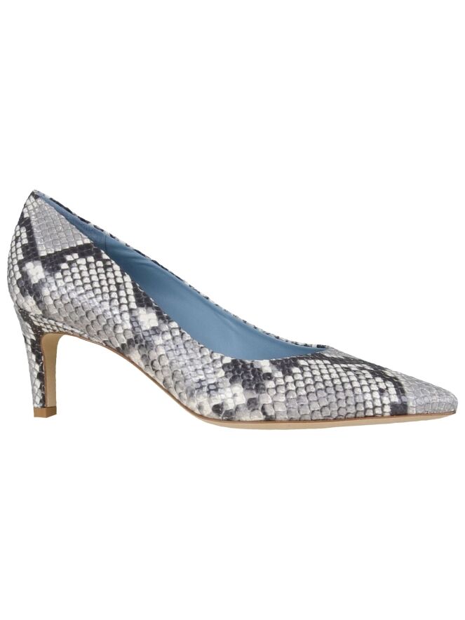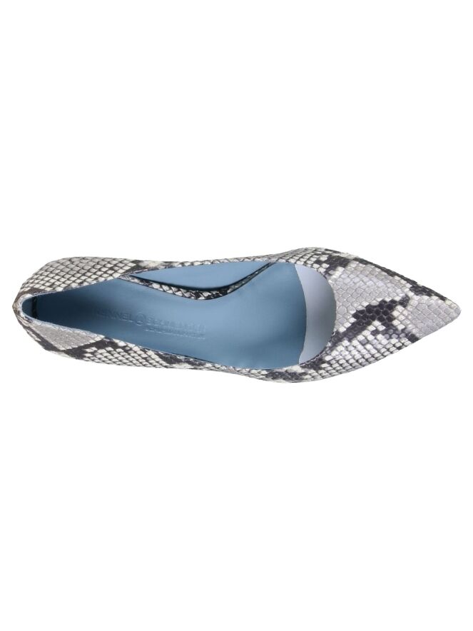 Pumps der Schuhmarke Kennel und Schmenger K&S mit Python-Print in verschiedenen Taupe-Tönen. Der Pumps läuft spitz zu. Der Absatz besteht aus dem gleichen Material wie der Pumps. Der Pumps hat ein Innenfutter aus Leder.
