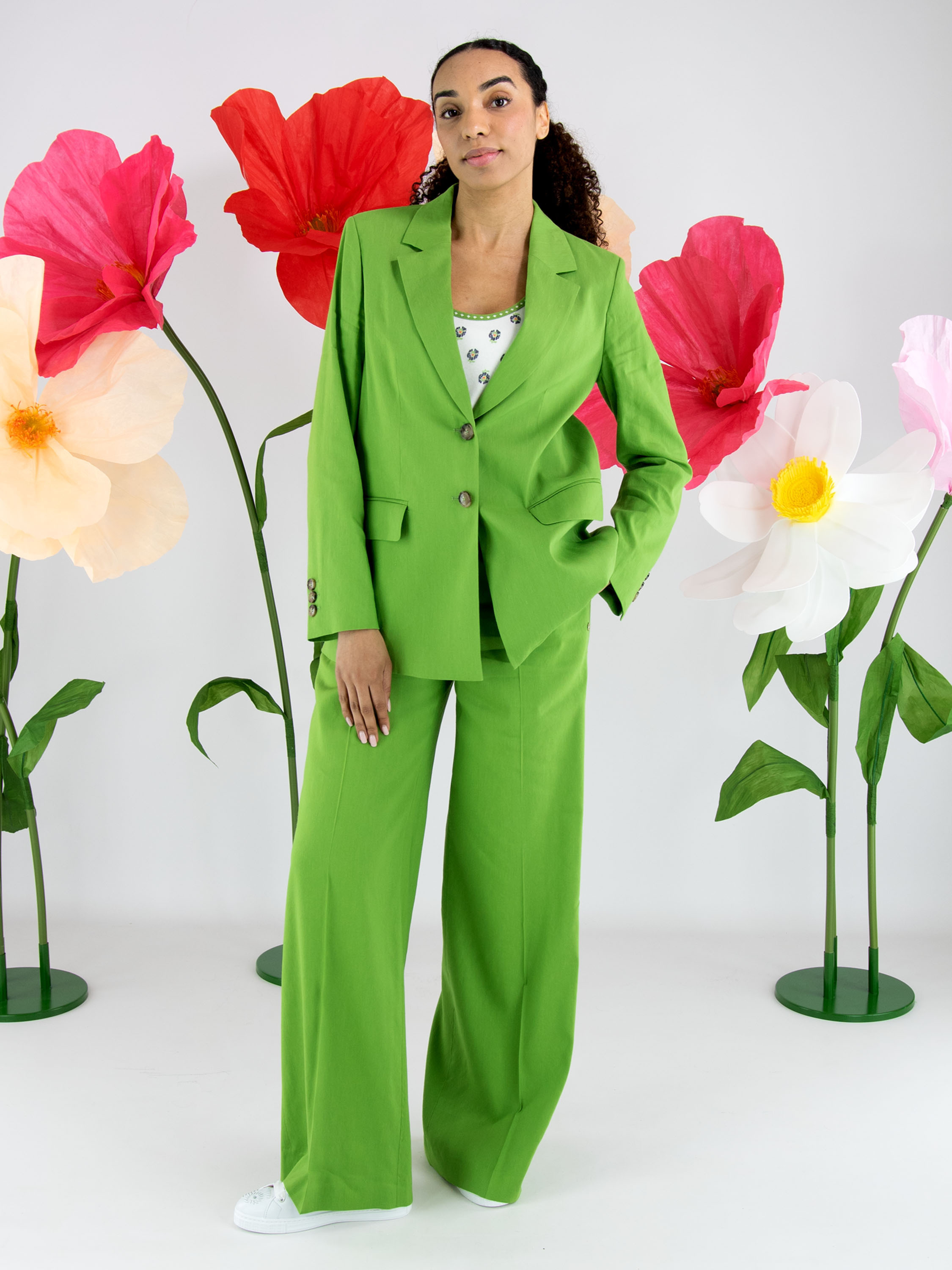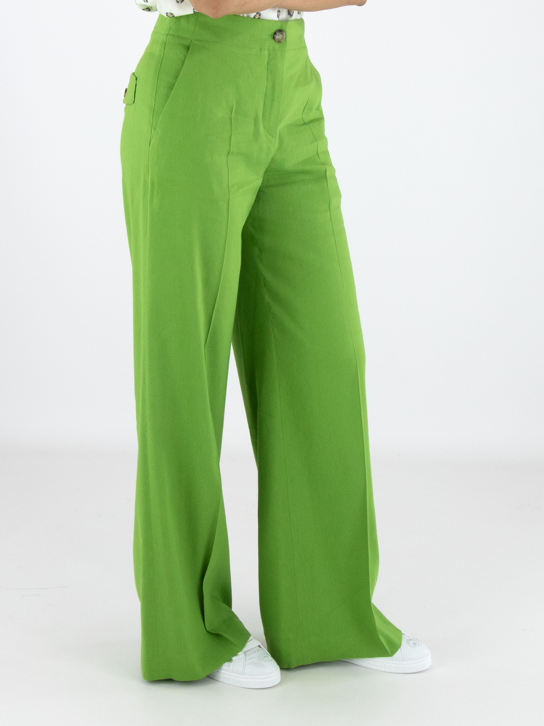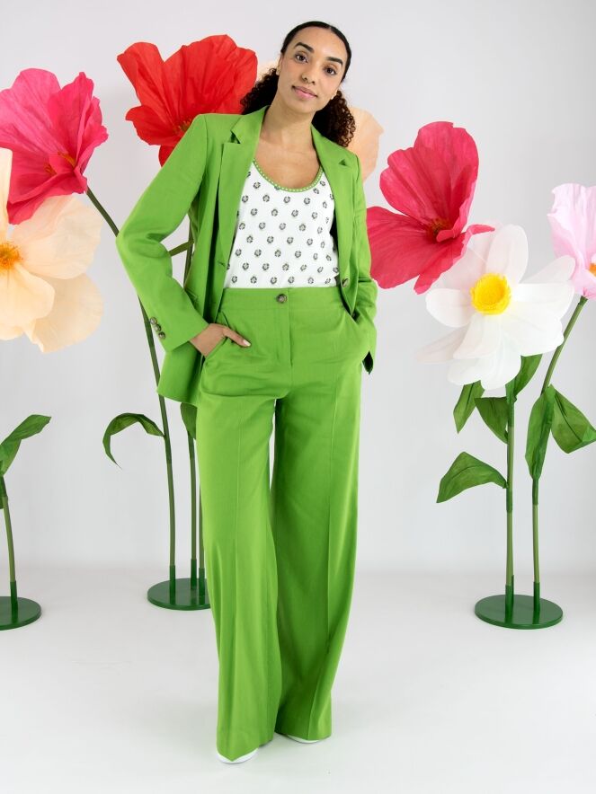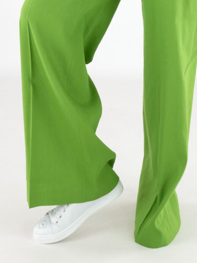 Hose von Marc Cain in einem leuchtenden Grünton. Mit Eingrifftaschen ausgestattet und mit einer eingepressten Bügelfalte in der Beinmitte versehen, überzeugt sie durch eine elegante und gepflegte Ausstrahlung. Diese Hose kann bei 30 Grad gewaschen werden.