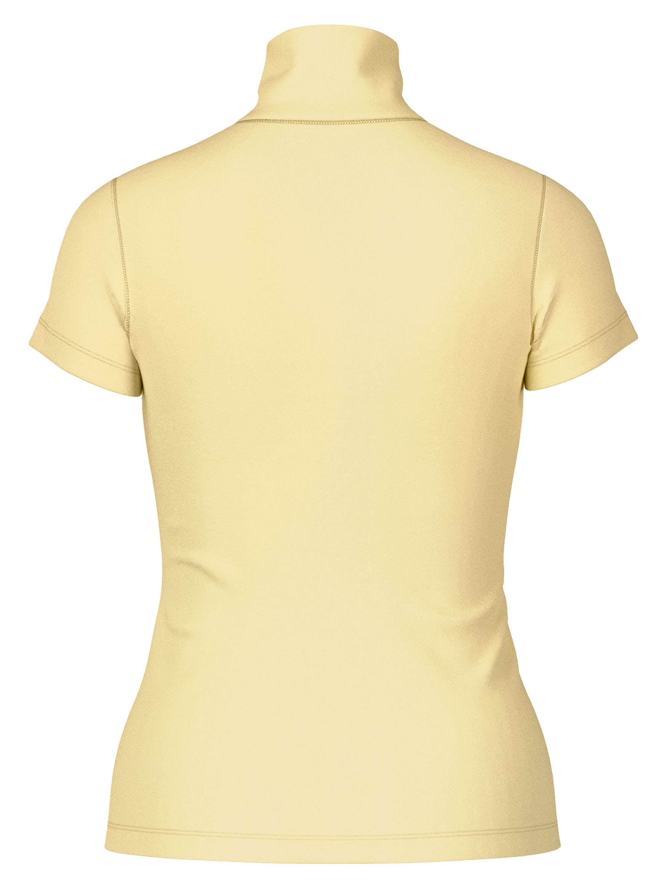 Shirt von Marc Cain in einem zarten Pastellgelb. Mit kurzen Ärmeln und einem Turtlekragen mit kleinem Schlitz in der vorderen Mitte verleiht es eine elegante, feminine Ausstrahlung. Dieses exklusive Damenshirt kann bei 30 Grad gewaschen werden.
