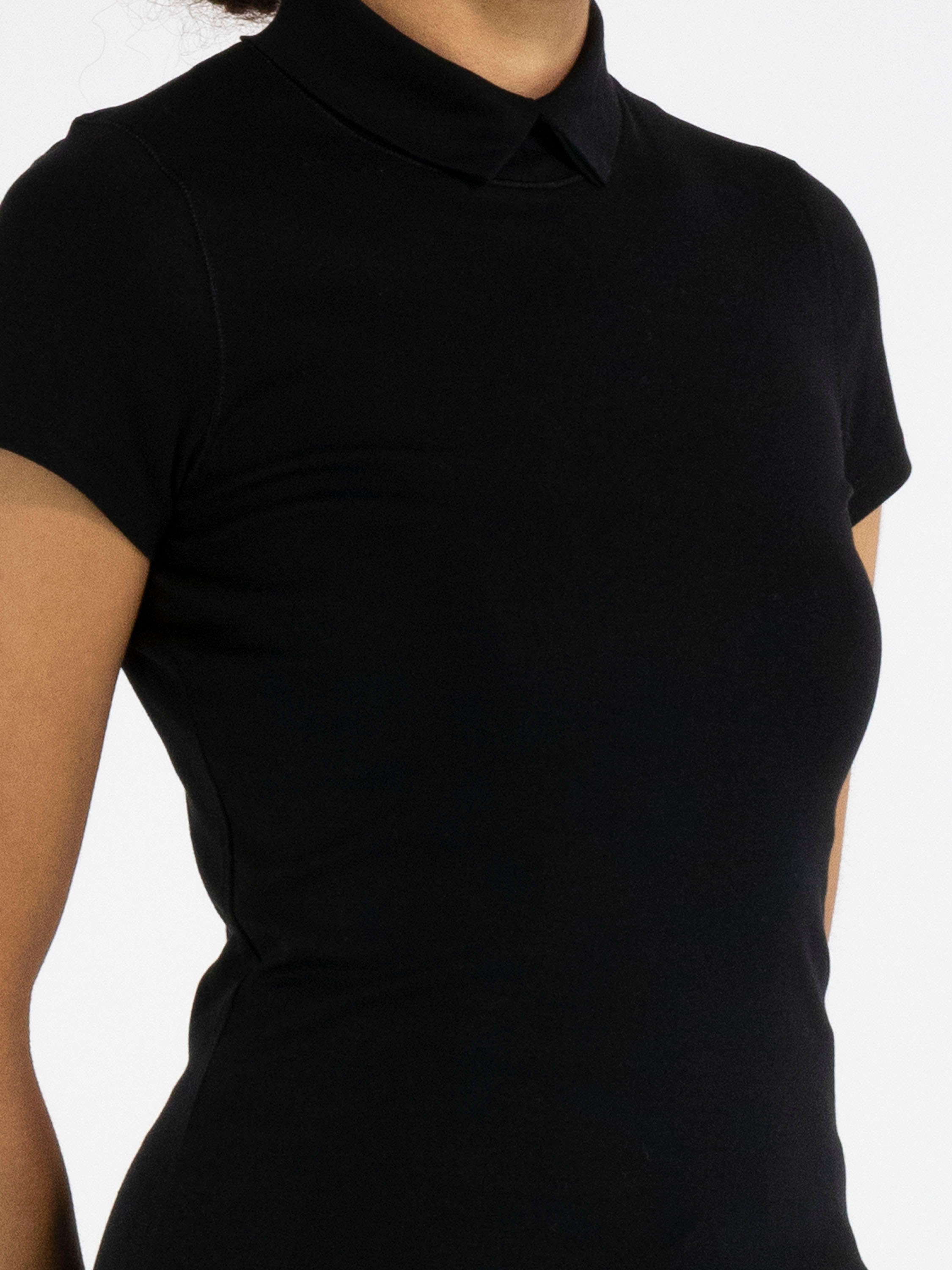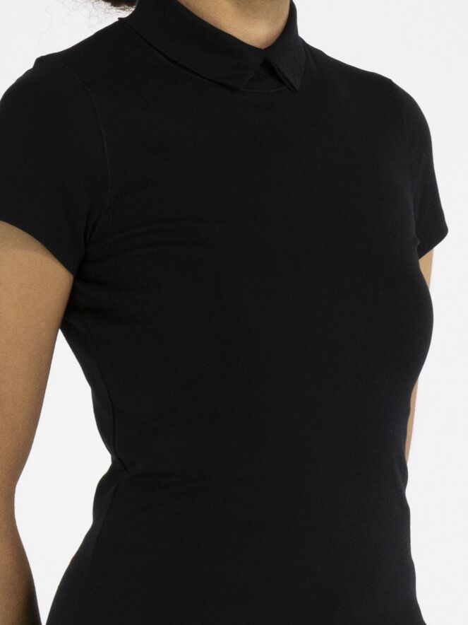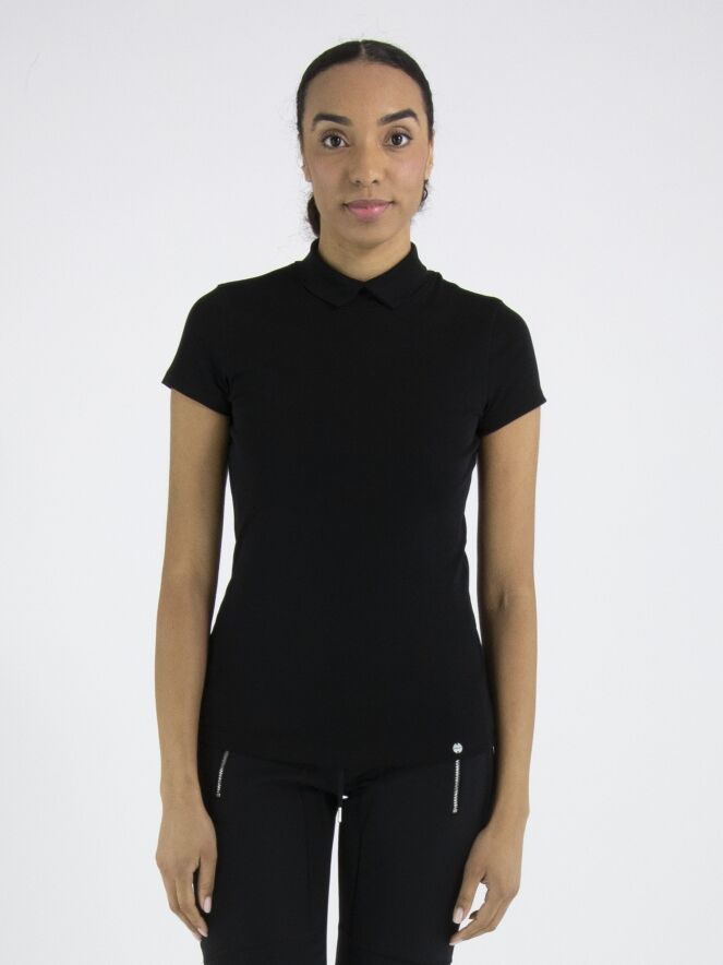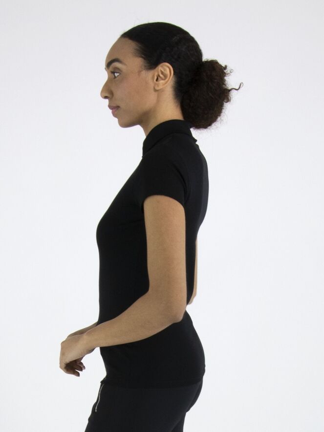 Shirt von Marc Cain in Schwarz. Mit kurzen Ärmeln und einem Turtlekragen mit kleinem Schlitz in der vorderen Mitte verleiht es einen eleganten, femininen Look. Dieses luxuriöse Basic von Marc Cain kann bei 30 Grad gewaschen werden.