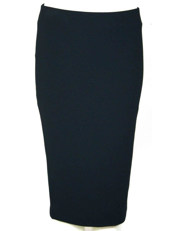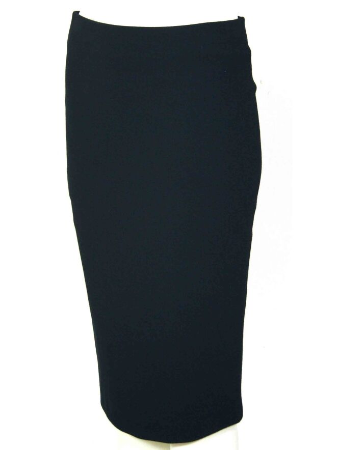 Rock von Marc Cain Collections in einfarbigem Schwarz. Der Rock hat ein geradliniges Modell mit einem 4 cm breiten Taillenband. Der Rock kann auf 30 Grad in der Waschmaschine gewaschen werden.