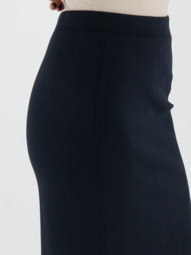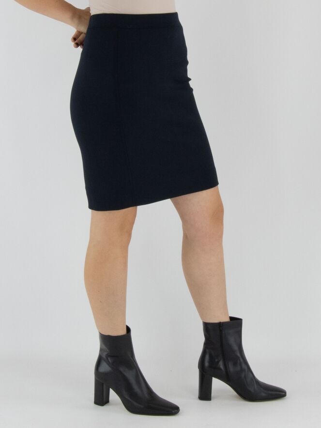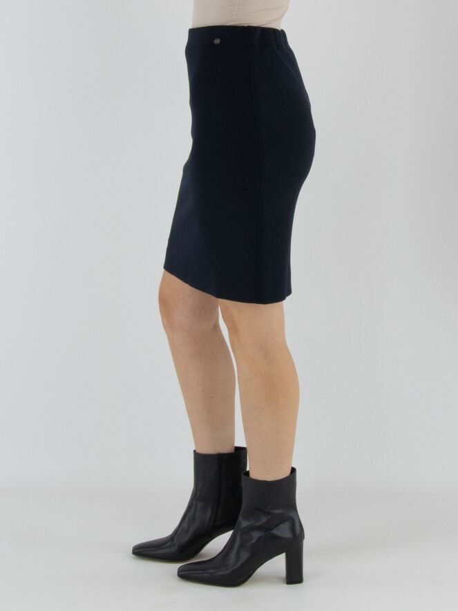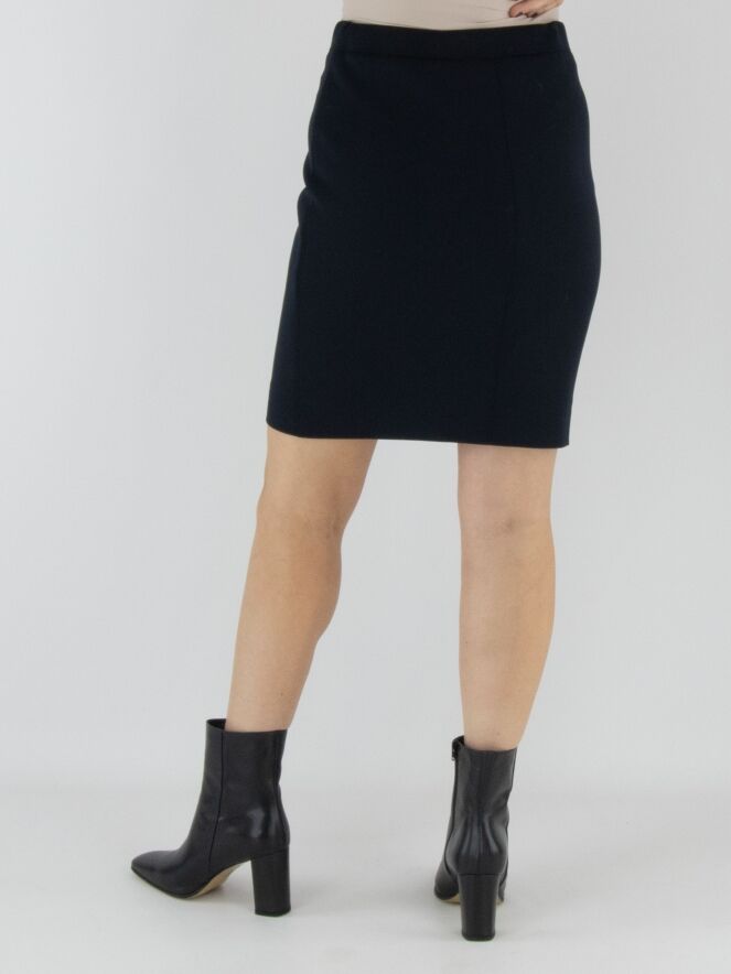 Rock von Marc Cain in Marineblau. Der Bund ist elastisch. Der Rock ist gefüttert und kann bei 30 Grad gewaschen werden.