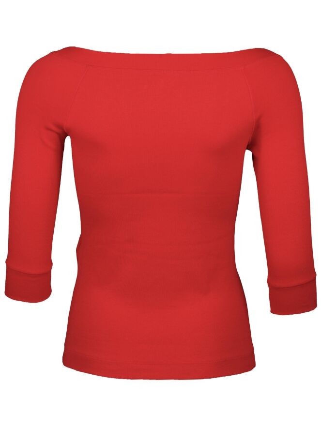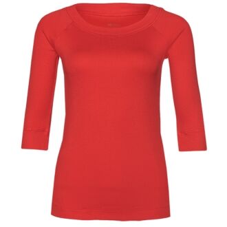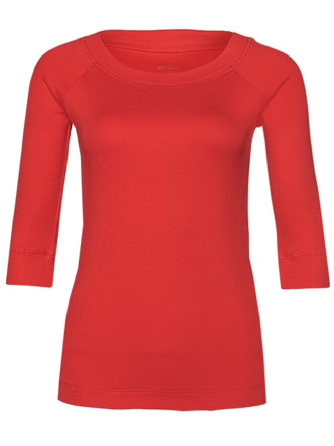 Rotes Shirt der Designermodemarke Marc Cain. Das Shirt hat halblange Ärmel und einen runden Halsausschnitt. Dieses Shirt kann auf 30 Grad in der Waschmaschine gewaschen werden.