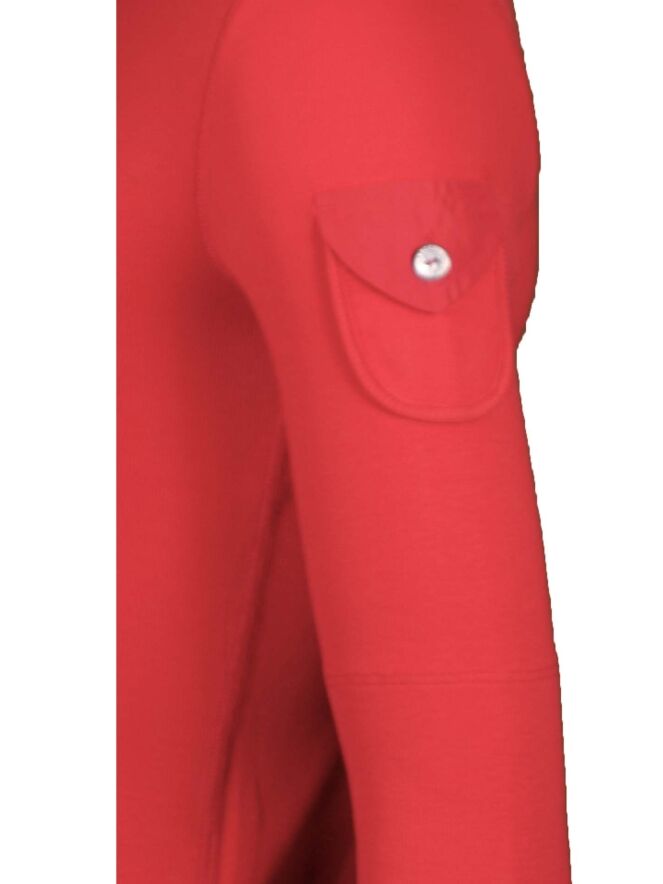 Feinripp-Poloshirt aus der Designermode-Kollektion von Marc Cain in der Farbe rot. Auf dem linken Ärmel befindet sich eine kleine Tasche. Der matt glänzende Kragen ist aus 100% Polyester. Dieses Poloshirt kann auf 30 Grad in der Waschmaschine gewaschen werden.