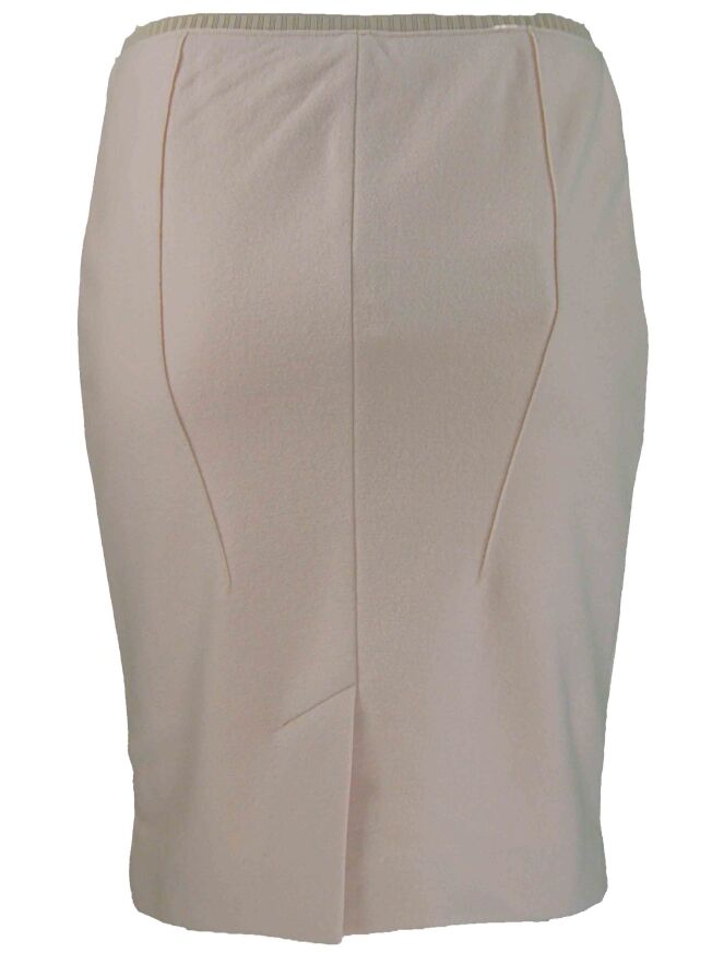 Rock der Designermodemarke Marc Cain in der Farbe Camelbeige. Der Rock hat ein Innenfutter und ein elastisches Taillenband. Dieser Rock darf nicht in die Waschmaschine.