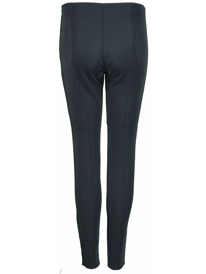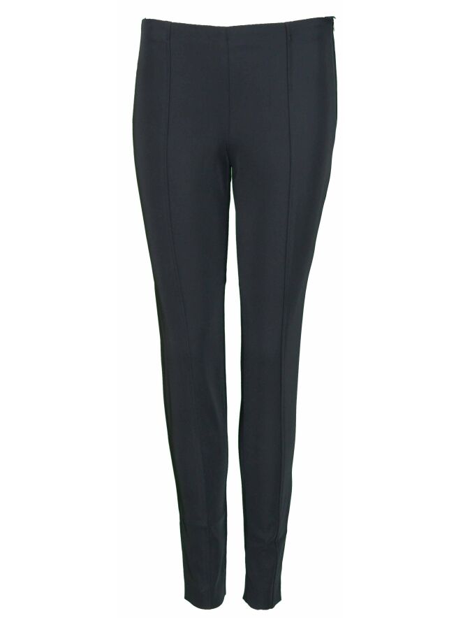Stoffhose der Designermode von Marc Cain aus der essentiels kollektion in der Farbe Schwarz. Die Hose hat ein 3 cm breites, elastisches Taillenband sowie eine Naht in der Mitte des Beinverlaufs auf der Vorder- und Rückseite. Die Hose kann auf 30 Grad in der Waschmaschine gewaschen werden.