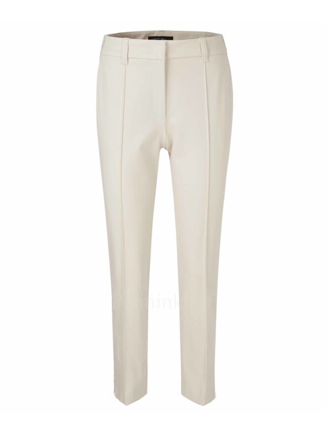Eine schwarze Hose der Designermode von Marc Cain. Am Rand der Eingriffstaschen befindet sich ein Spitzenbesatz. Dieser Akzent spiegelt sich am unteren Saum der Hose auf der Außenseite. Diese Hose kann bei 30 Grad gewaschen werden.