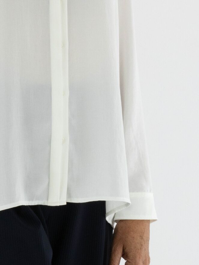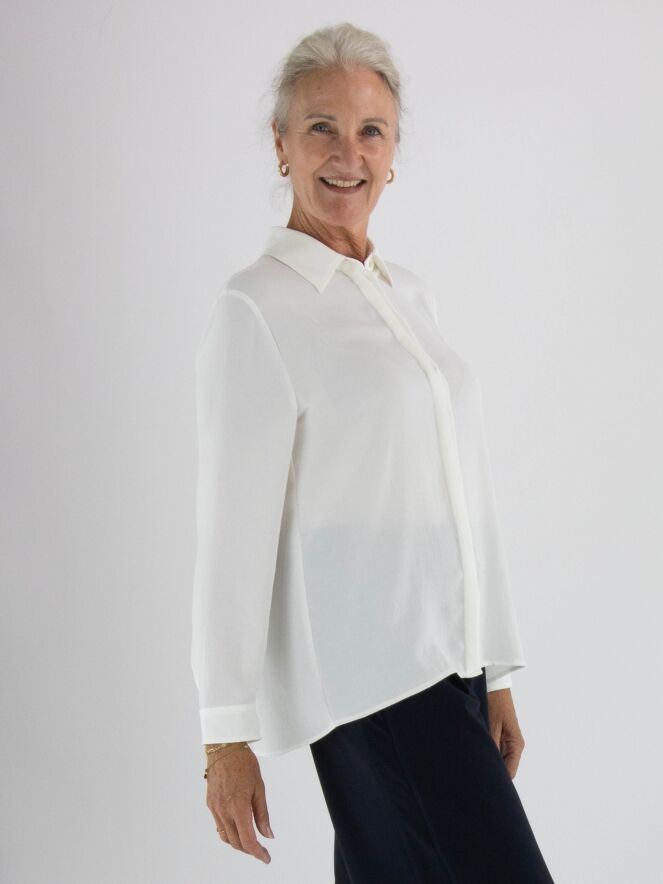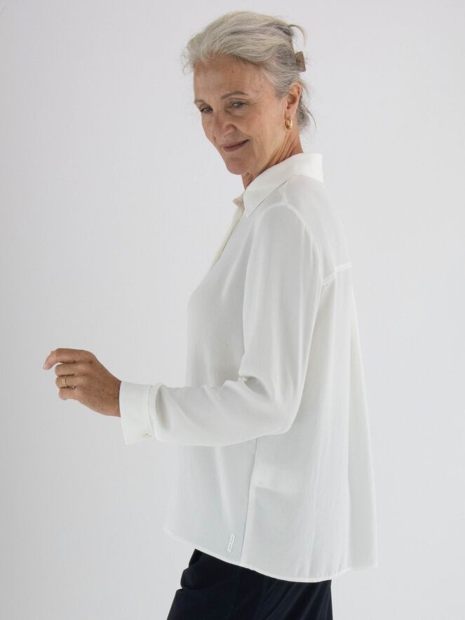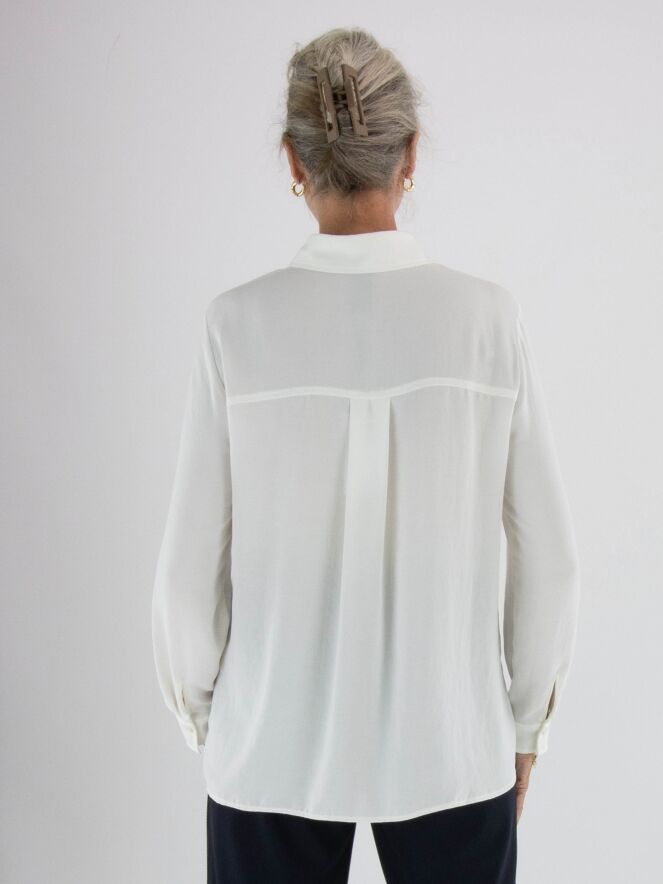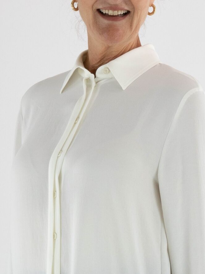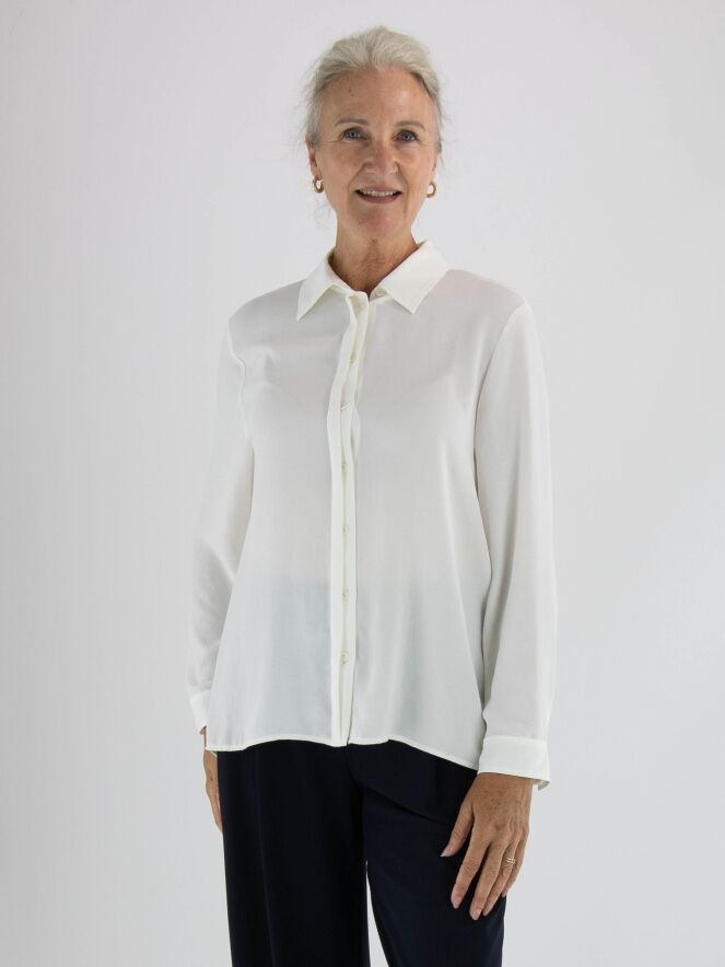 Bluse von Marc Cain in Cremeweiß. Die Bluse hat eine verdeckte Knopfleiste und kann bei 30 Grad gewaschen werden.