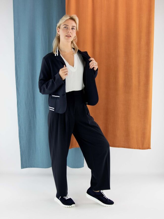 Vorne: 100% Polyester; Hinter: 94% Baumwolle, 6% Elastan