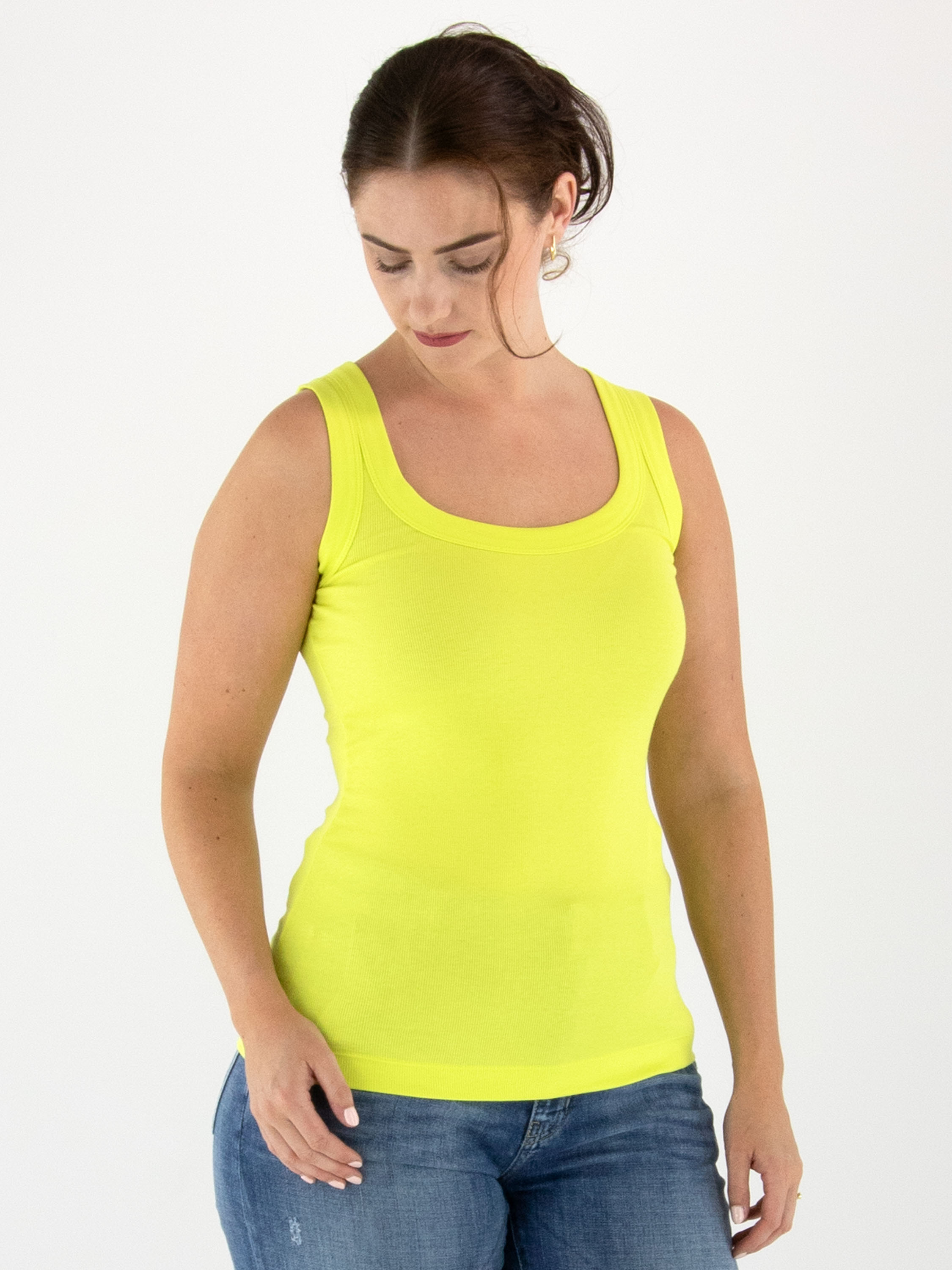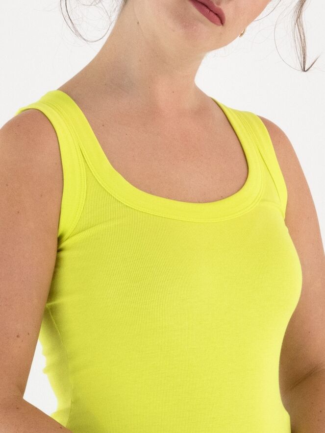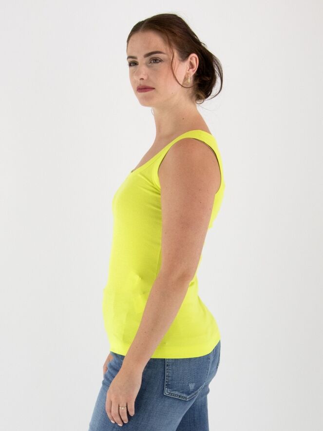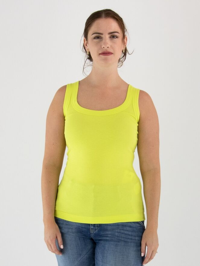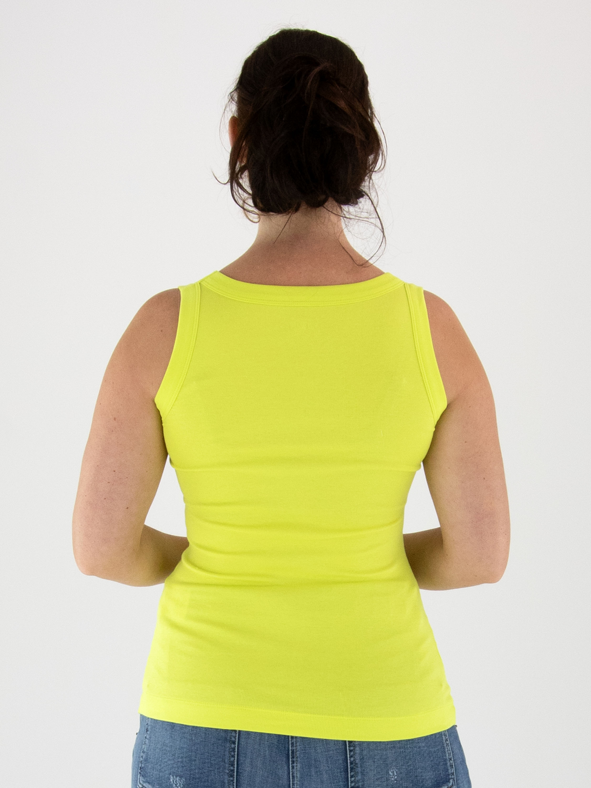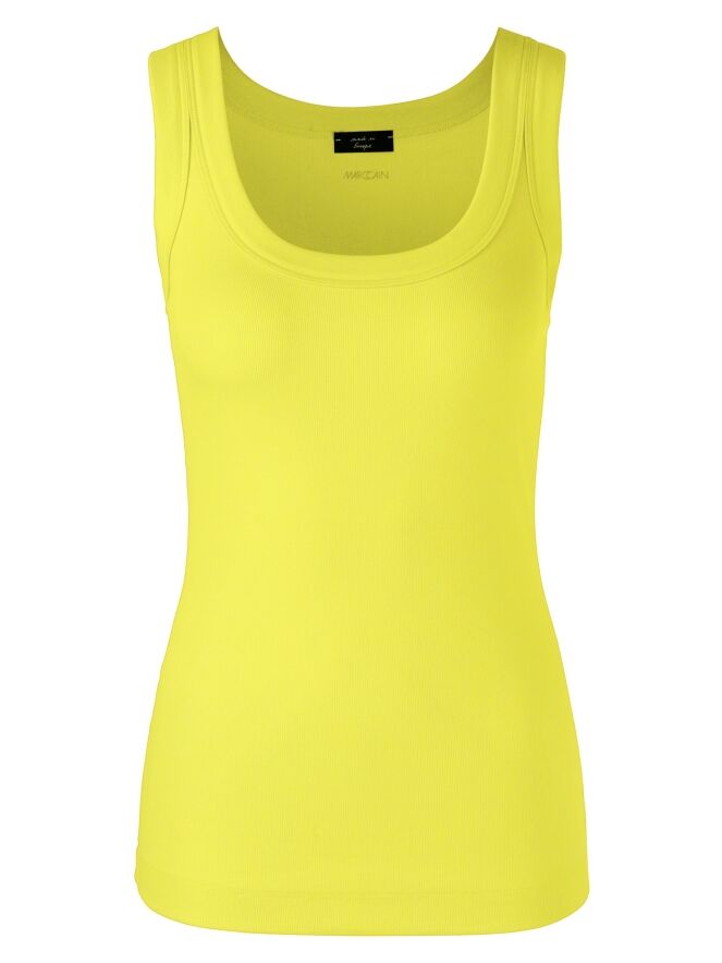 Top von Marc Cain in Limettengrün. Das Top hat einen runden Ausschnitt und kann bei 30 Grad gewaschen werden.
