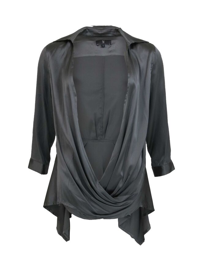 MODEL: 1M68021201 KLEUR: GRIJS MATERIAAL: 94% ZIJDE, 6% SPANDEX LENGTE BLOUSE: 74 CM
