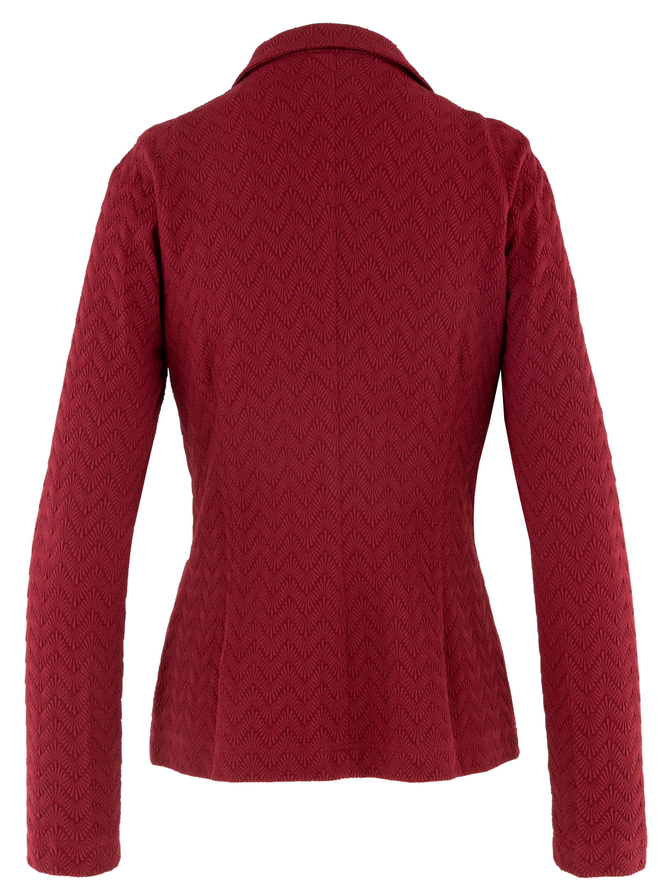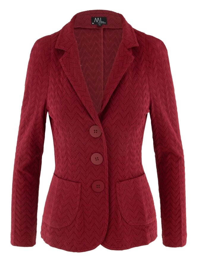 Blazer von ML Collections in einem kräftigen Himbeerrot. Der Stoff weist eine dezente Zickzack-Reliefstruktur auf, die dem Design Tiefe und Charakter verleiht. Mit drei Knöpfen zu schließen und ungefüttert gearbeitet, überzeugt er durch eine leichte, fließende Passform. Dieser Blazer darf nicht gewaschen werden.