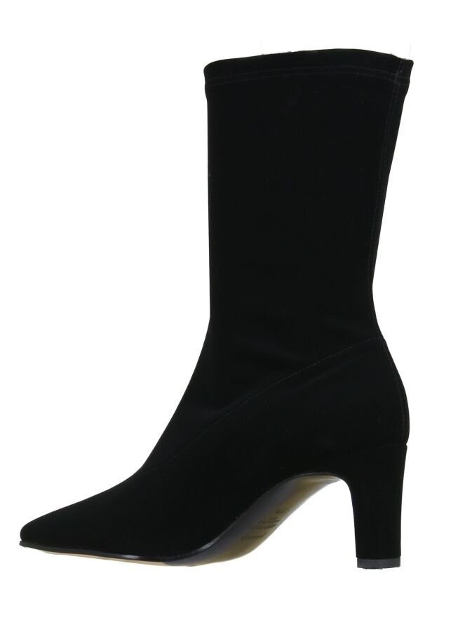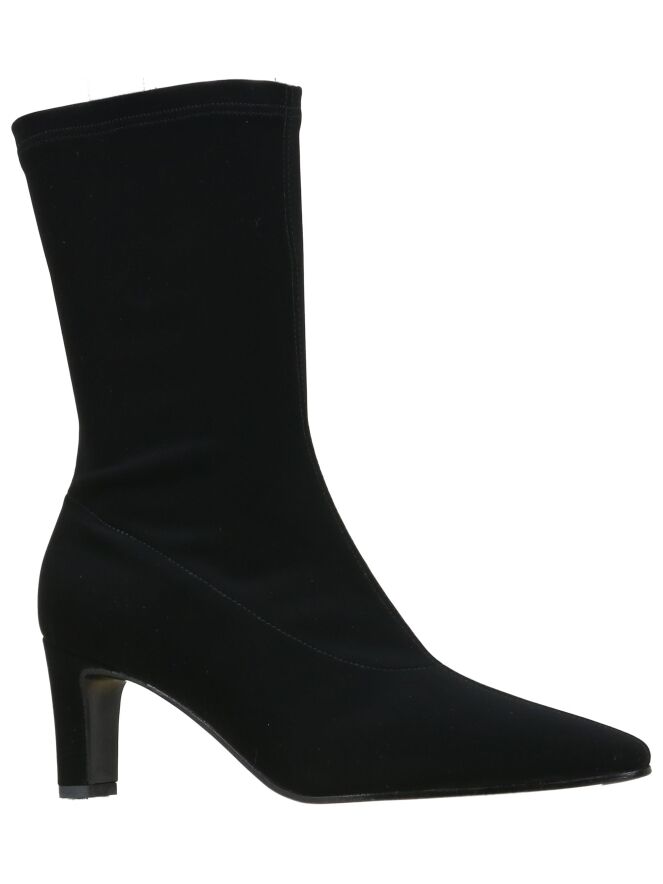 Schwarze Stiefelette der Damenschuhmarke Panara. Die spitz zulaufende Stiefelette kommt mit einem elastischen Schaft.