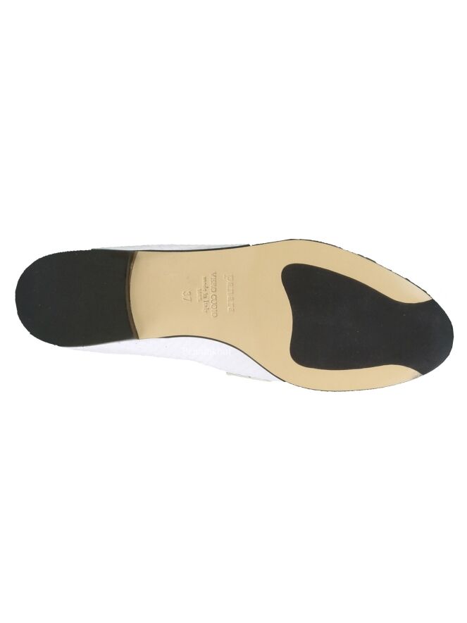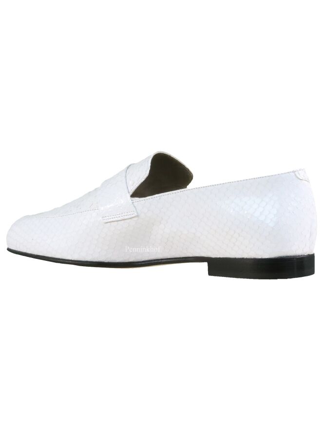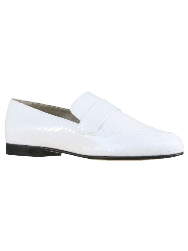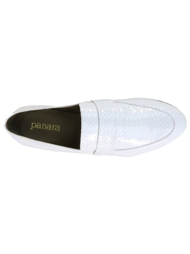 Slipper der Designerschuhmarke Panara in einem weißen Kroko-Print. Das Innenfutter ist aus Leder.