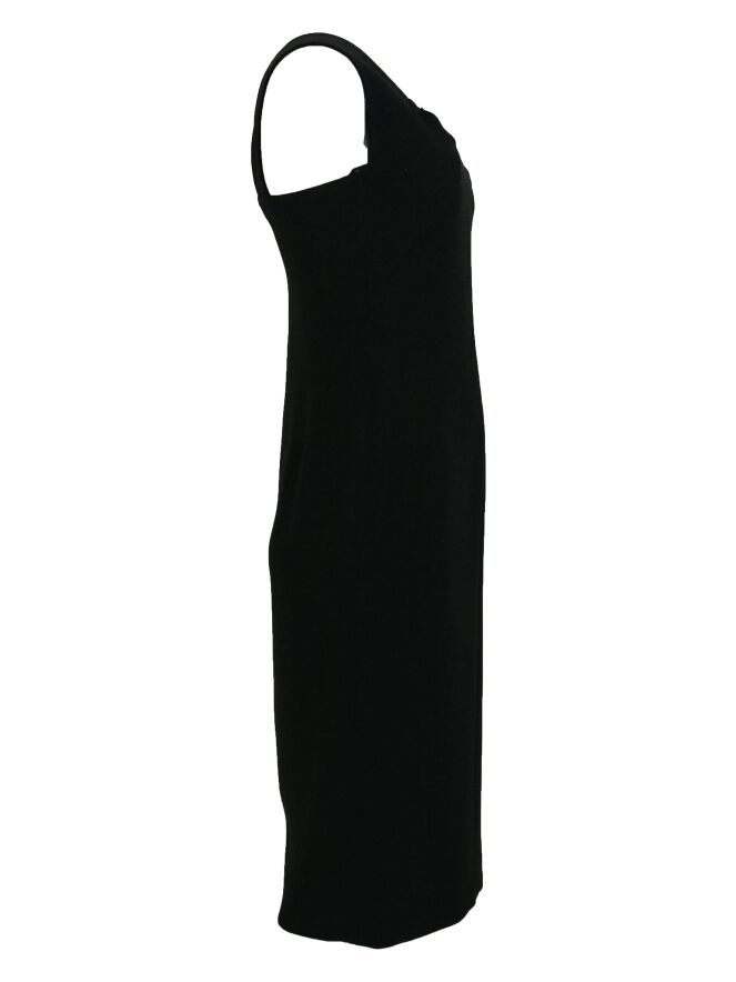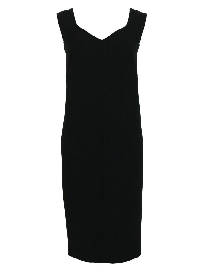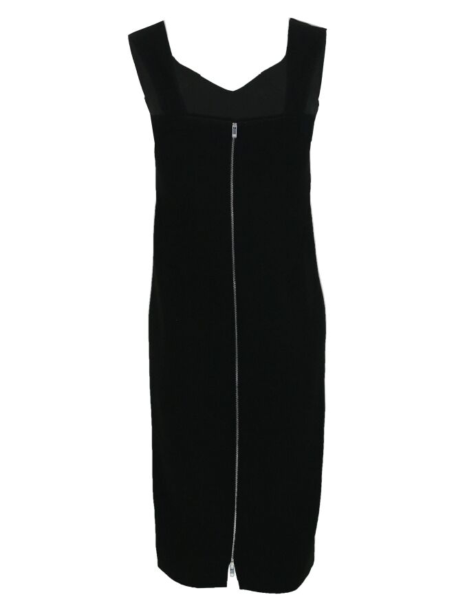 Schwarzes Kleid der Designermarke Riani. Die Träger sind 8 cm breit. Am Rücken verläuft ein Reißverschluss über die gesamte Länge des Kleides. Das Kleid darf nicht gewaschen werden.