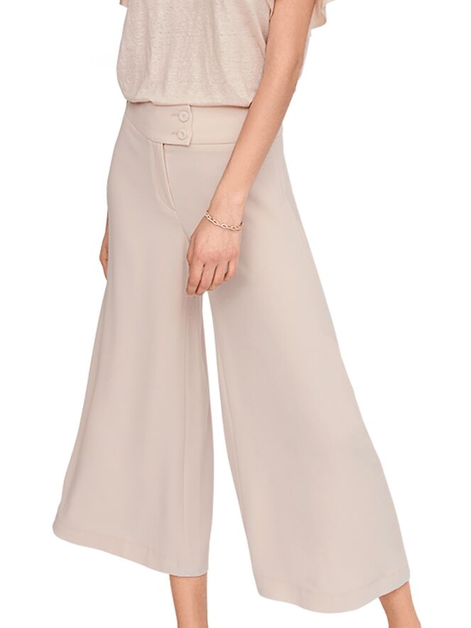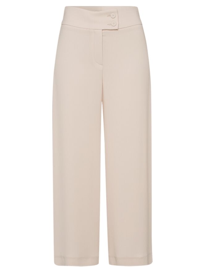 Eine besonders weite Hose der Designermarke Riani in Vanille. Der Bund ist breit und mit zwei Knöpfen versehen. Diese Hose kann bei 30 Grad in der Waschmaschine gewaschen werden.