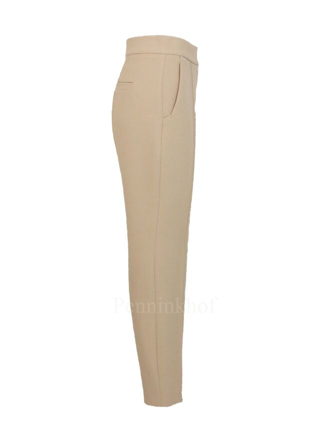 Eine Hose der Designermarke Riani in einem satten Sand. Die Hose kommt mit Eingriffstaschen. Eine mittige Steppnaht akzentuiert die Hosenbeine. Diese Hose kann bei 30 Grad gewaschen werden.