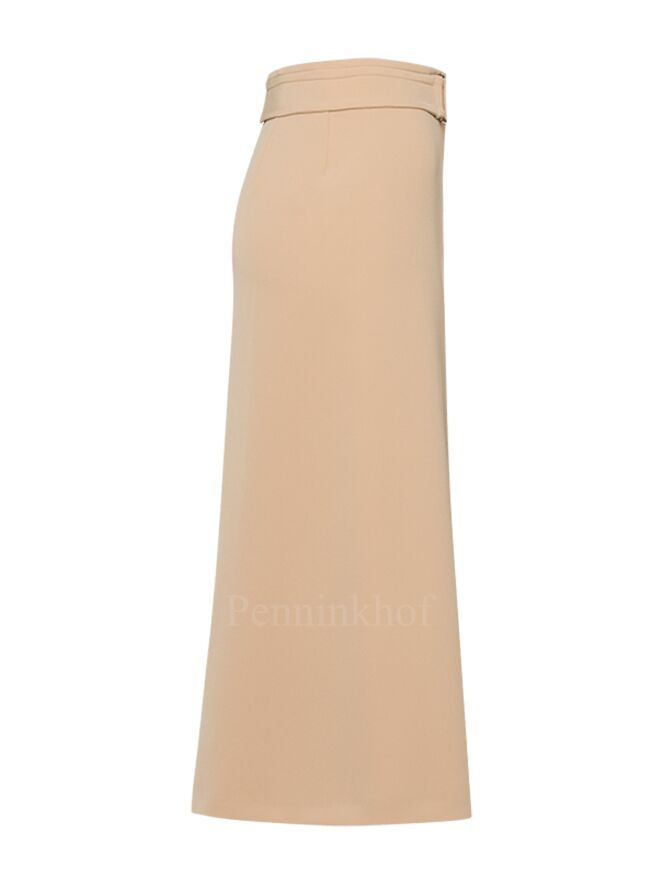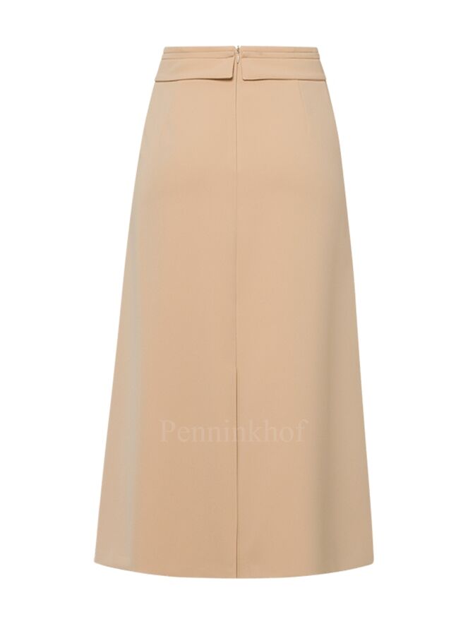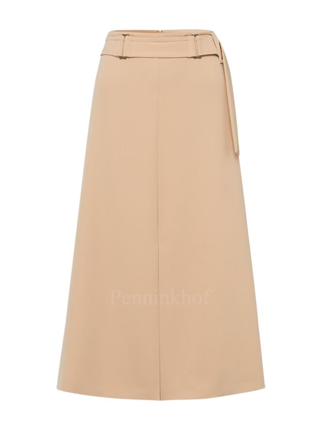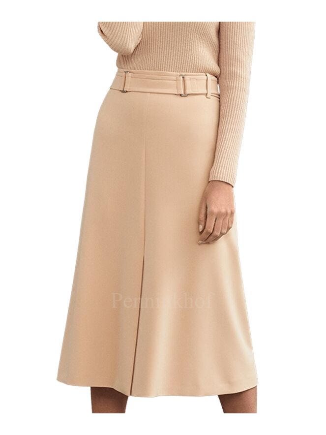 Ein Rock der Designermarke Riani in einem satten Sand. Der A-linienförmige Rock kommt mit einem mittigen Schlitz auf Vorder- und Rückseite. In der Taille befindet sich ein breiter Gürtel. Dieser Rock sollte nicht gewaschen werden.