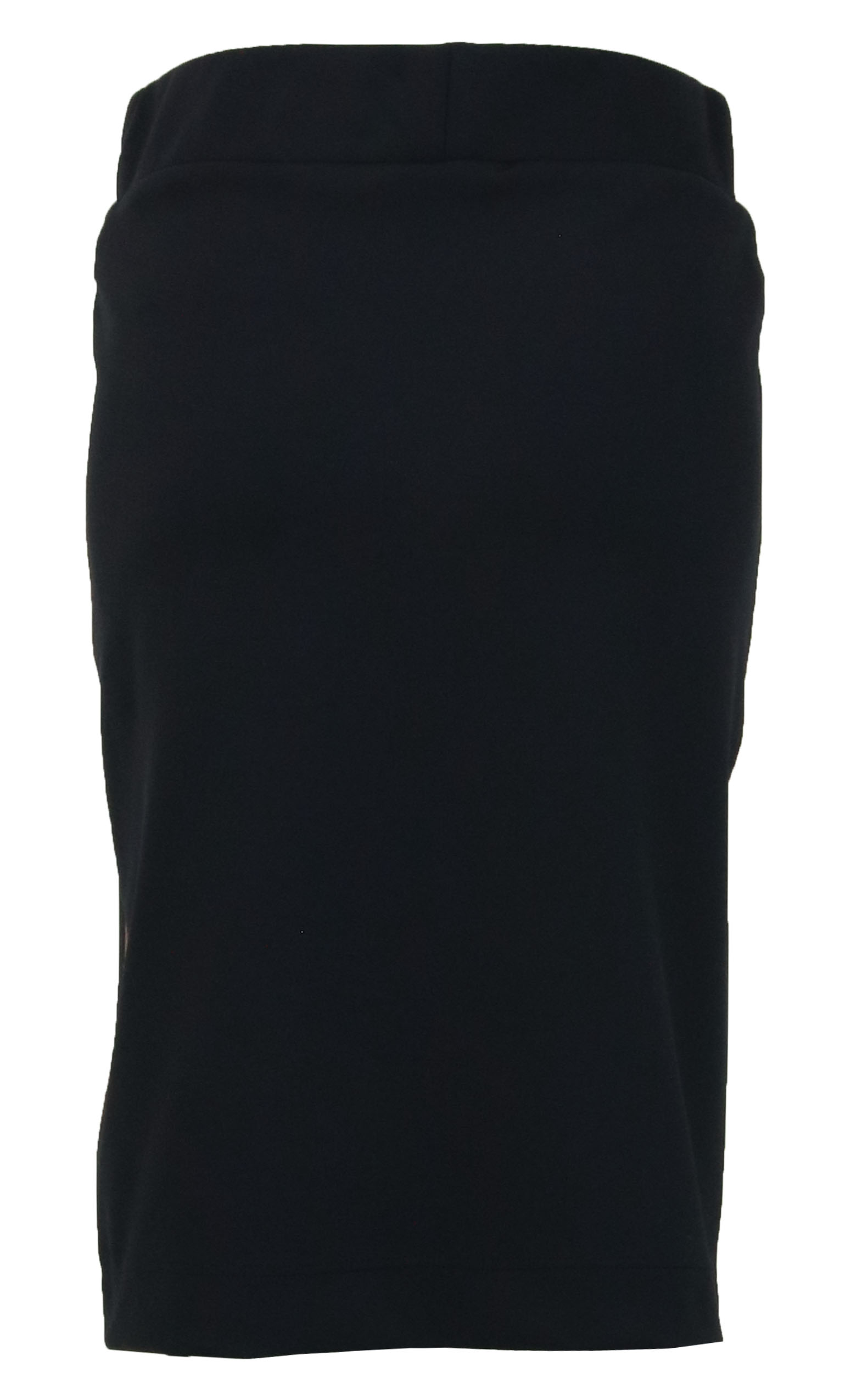 Schwarzer Rock der Designermarke Riani. Die Taille ist mit einem breiten elastischen Bund versehen. An der Vorderseite sind zwei Reißverschlüsse mit einem schwarzen Lackstreifen. Ein Streifen mit braunem Reptilprint akzentuiert die Seiten. Dieser Rock hat kein Innenfutter und darf von Hand gewaschen werden.