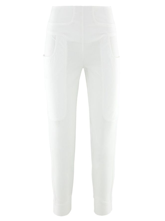 Hose von Rundholz Black Label in einem eleganten Cremeweiß. Der elastische Bund bietet eine bequeme und moderne Passform. Die etwas tiefer angesetzten seitlichen Eingrifftaschen verleihen dem Design eine zeitgemäße Note. Diese exklusive Designerhose kann bei 30 Grad gewaschen werden.