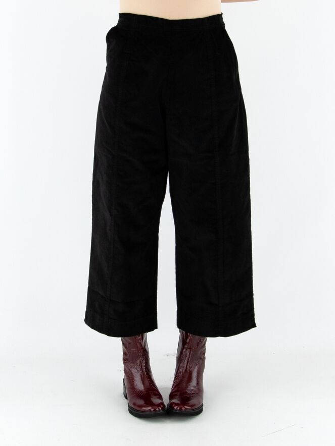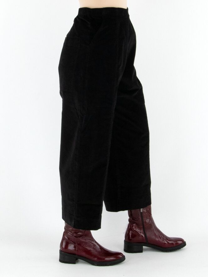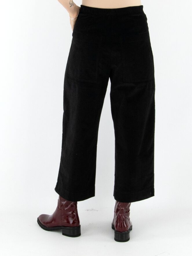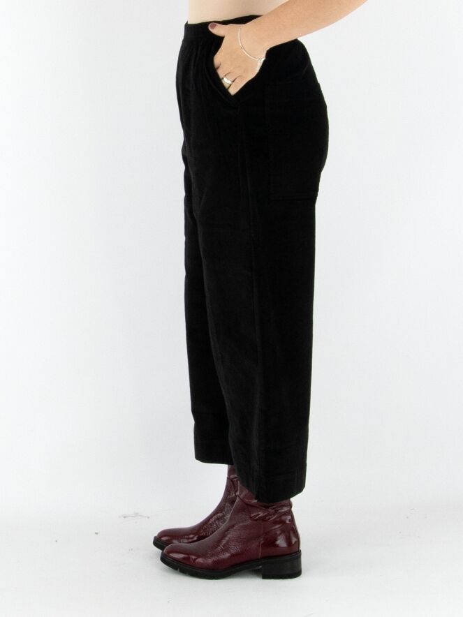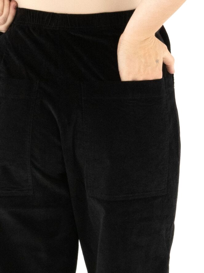 Eine gerade geschnittene Velourshose von Rundholz Black Label in Schwarz. Der Bund ist elastisch gearbeitet. Die Hose verfügt über Seitentaschen und kann bei 30 Grad gewaschen werden.
