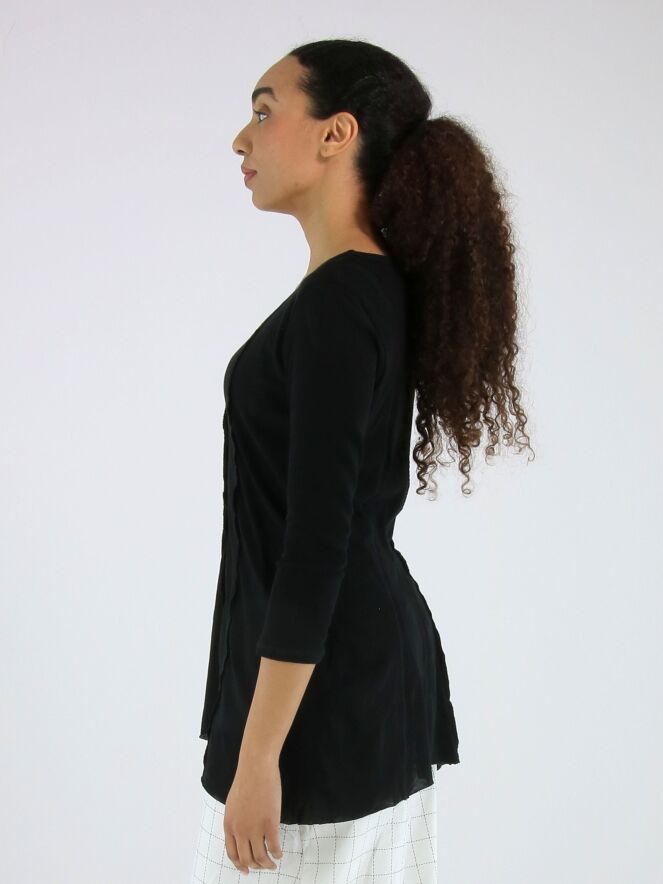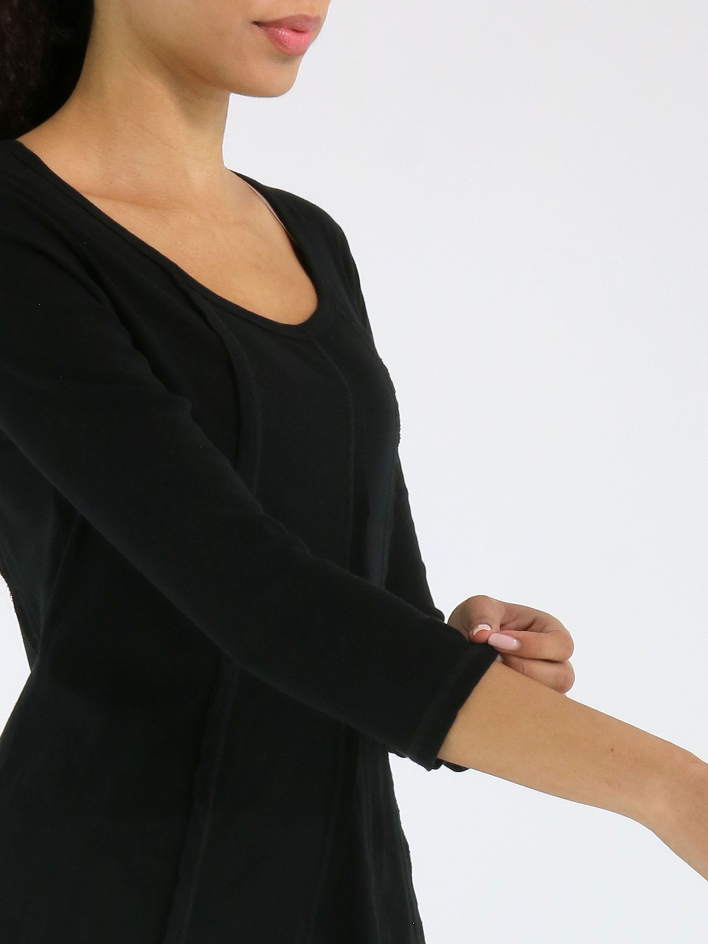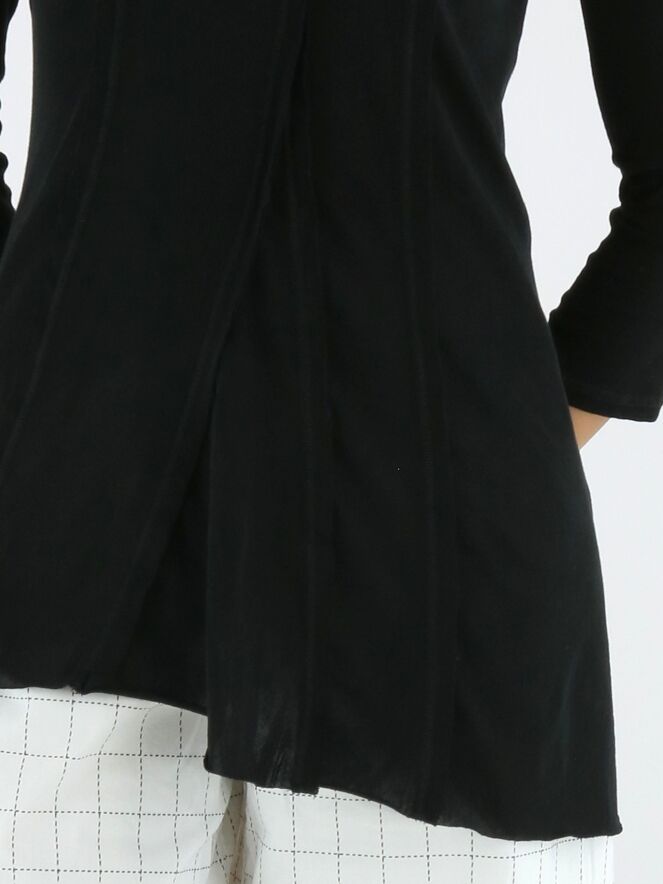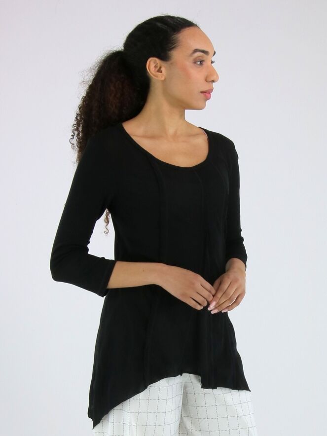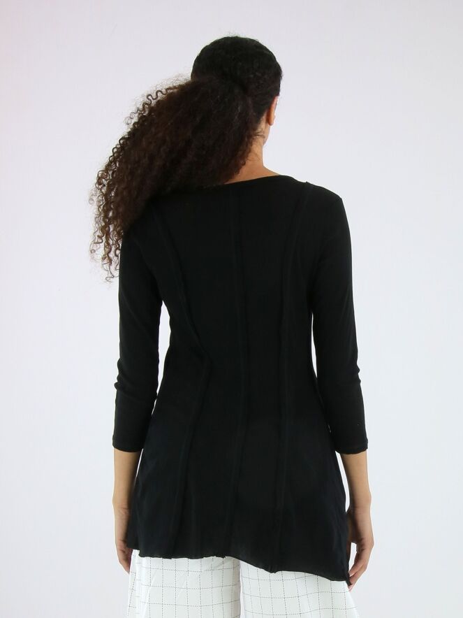 Schmal geschnittenes Shirt von Rundholz Black Label in Schwarz. Sowohl vorne als auch hinten sind drei umgekehrte Nähte eingearbeitet, die dem Design eine dezente architektonische Note verleihen. Mit Rundhalsausschnitt und halblangen Ärmeln ausgestattet, kann dieses exklusive Designershirt bei 30 Grad gewaschen werden.