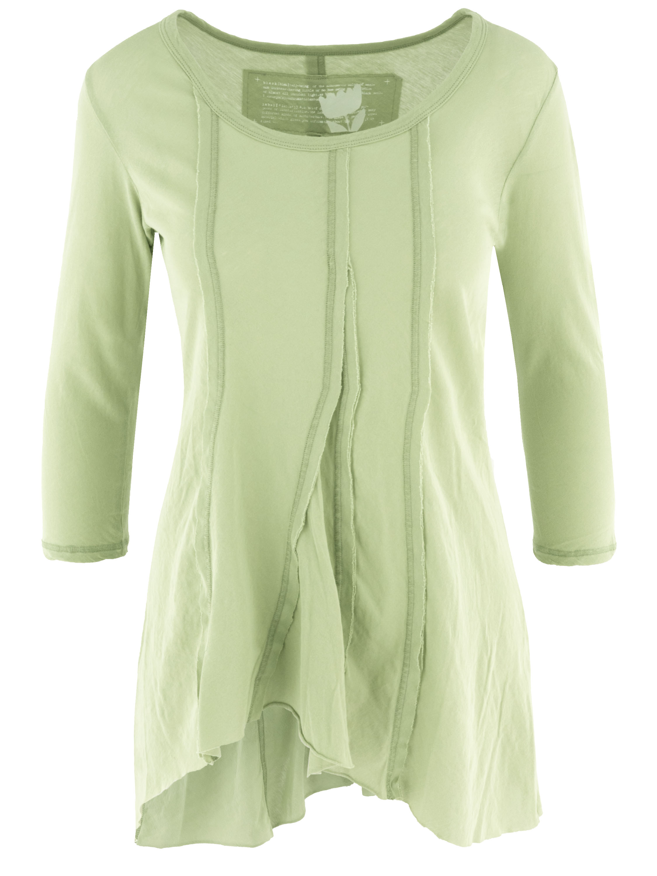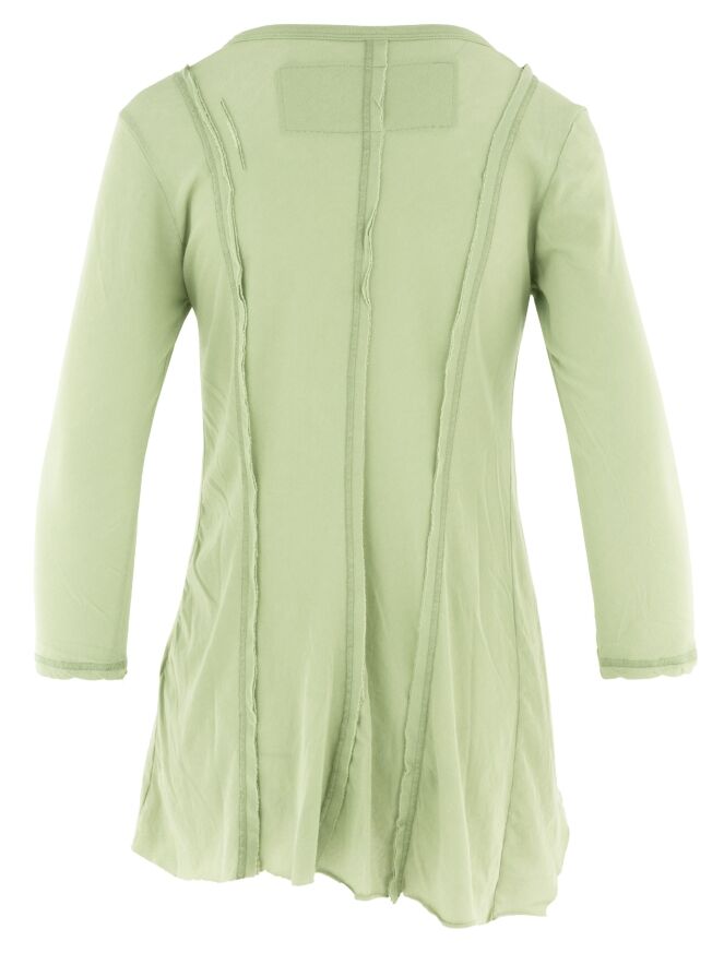 Schmal geschnittenes Shirt von Rundholz Black Label in einem zarten Pastell-Pistaziengrün. Sowohl vorne als auch hinten sind drei umgekehrte Nähte eingearbeitet, die dem Design eine dezente architektonische Note verleihen. Mit Rundhalsausschnitt und halblangen Ärmeln kann dieses exklusive Shirt bei 30 Grad gewaschen werden.