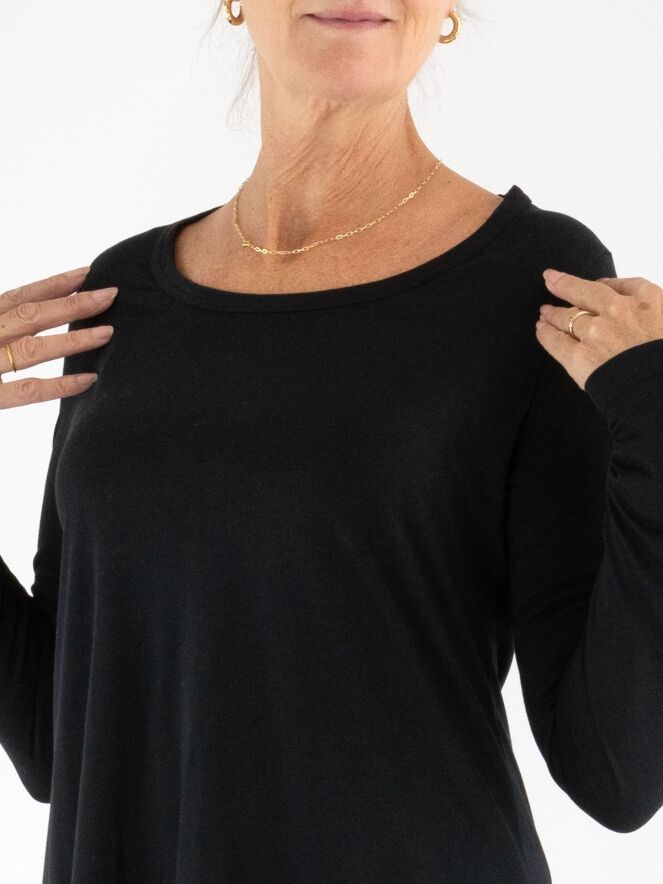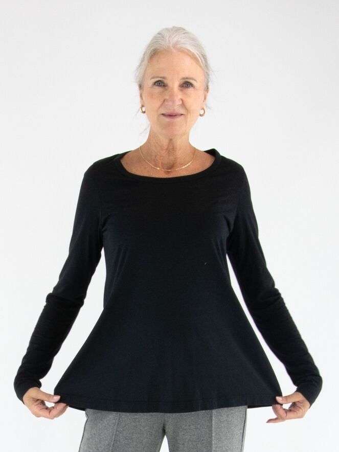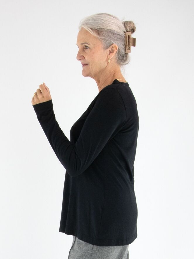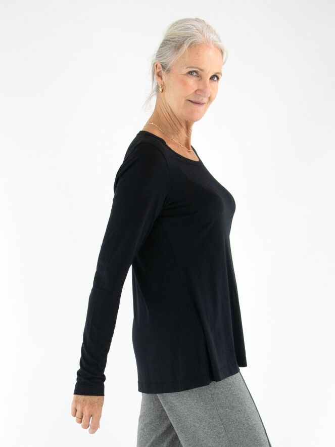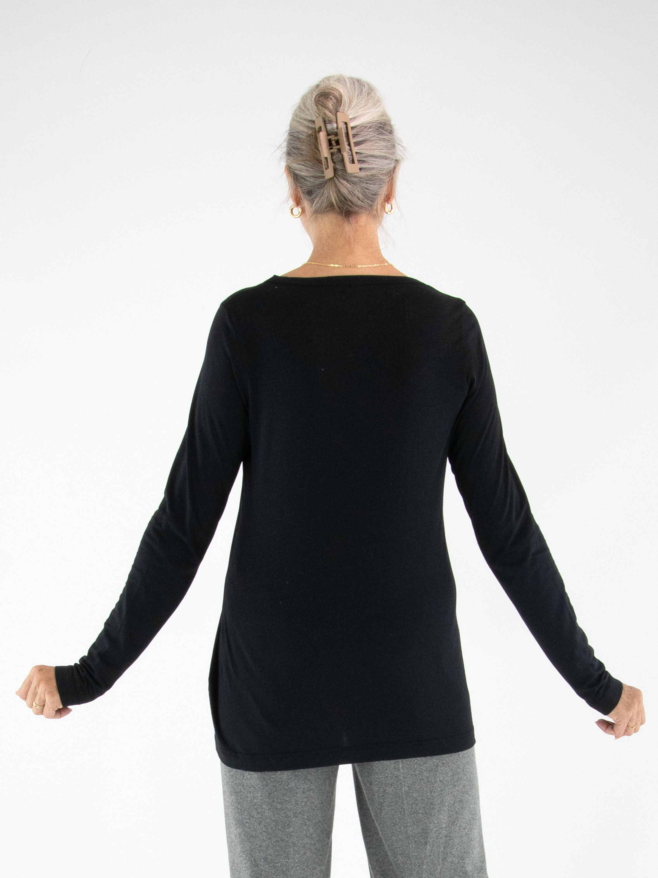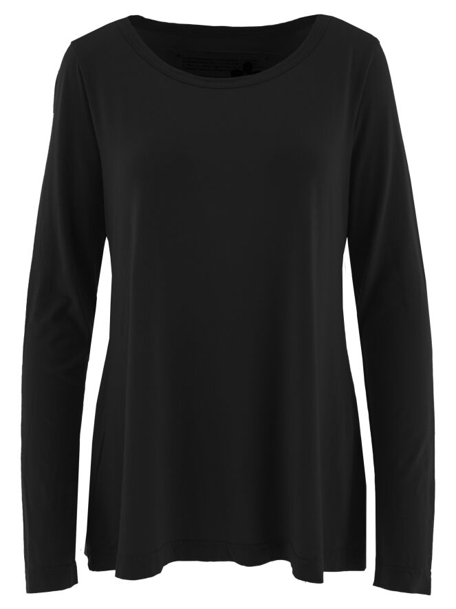 Ein Shirt von Rundholz Black Label in Schwarz. Das Modell hat einen Rundhalsausschnitt und lange Ärmel. Dieses Shirt kann bei 30 Grad gewaschen werden.