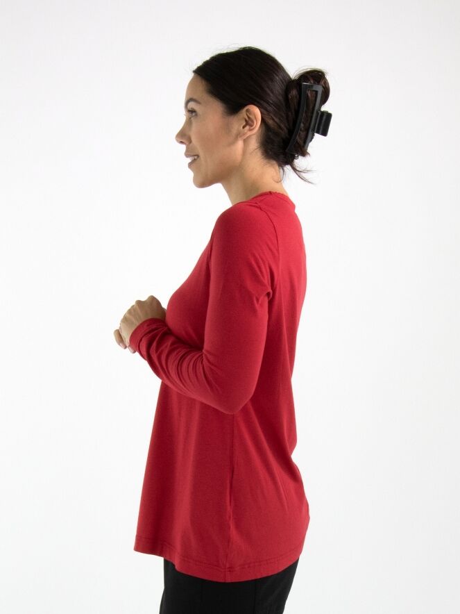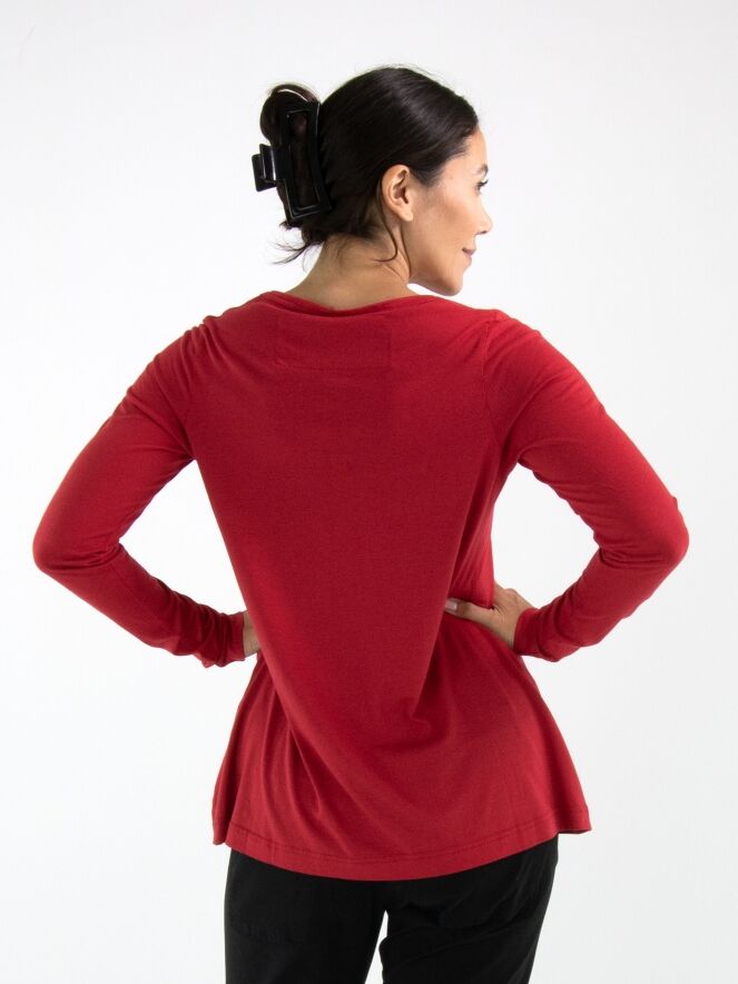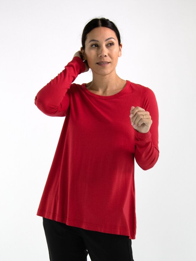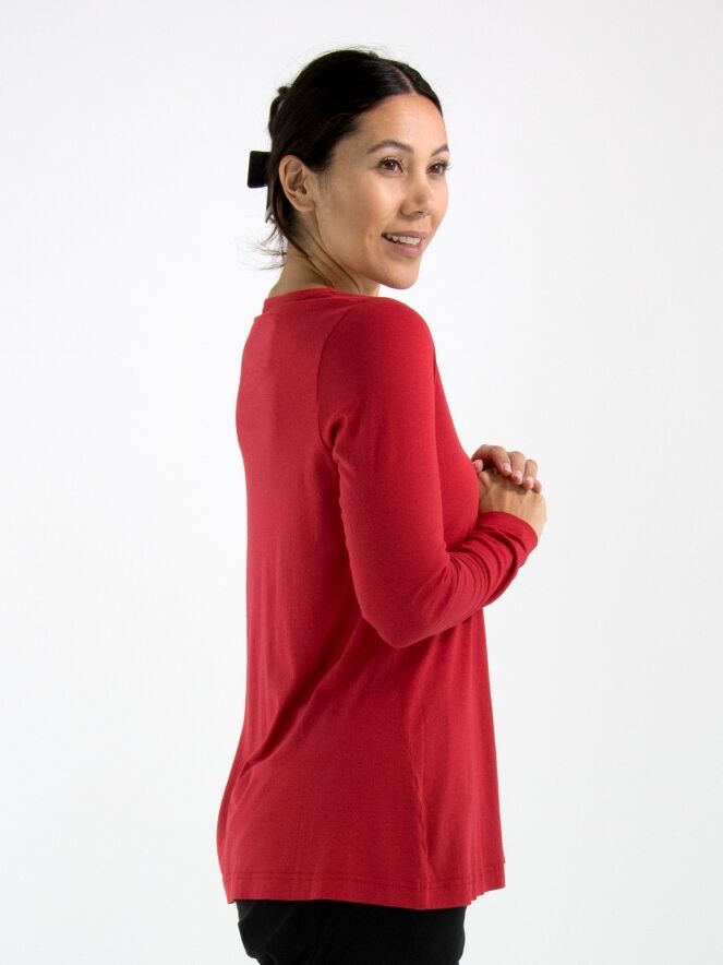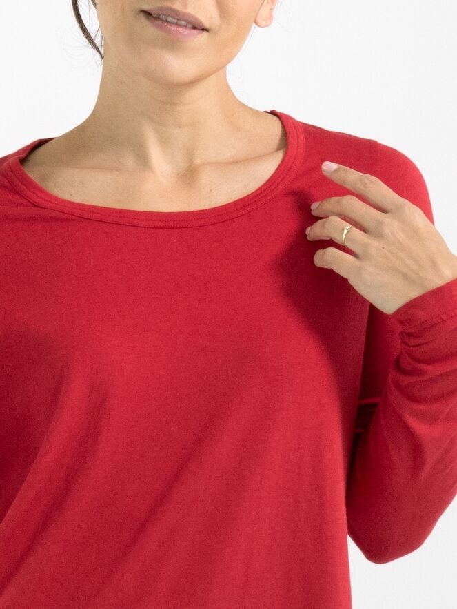 Ein Shirt von Rundholz Black Label in Rot. Das Modell hat einen Rundhalsausschnitt und lange Ärmel. Dieses Shirt kann bei 30 Grad gewaschen werden.
