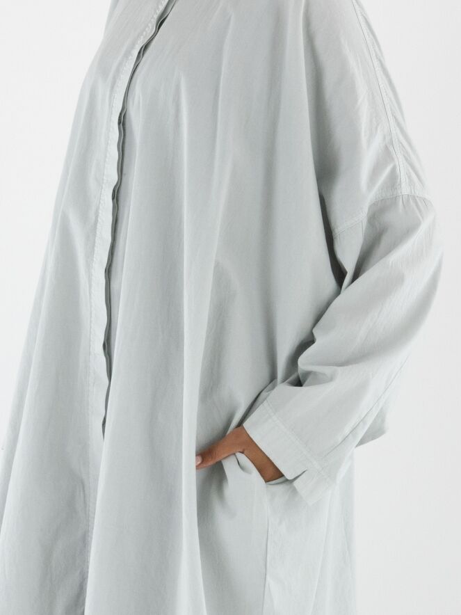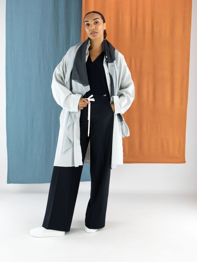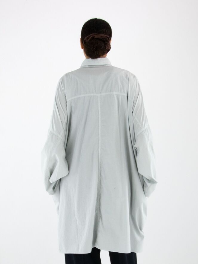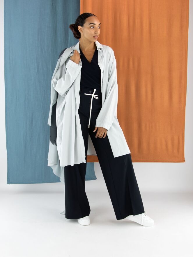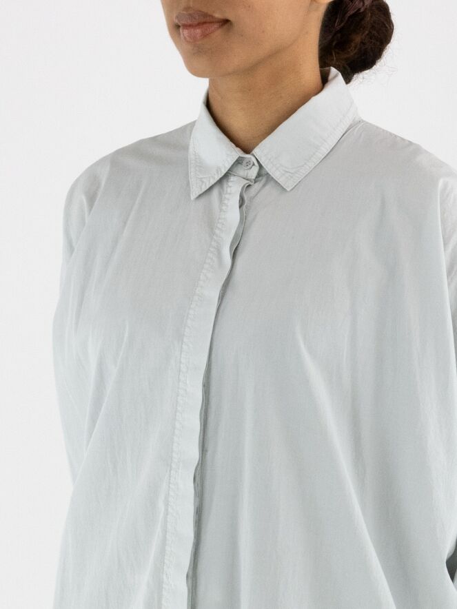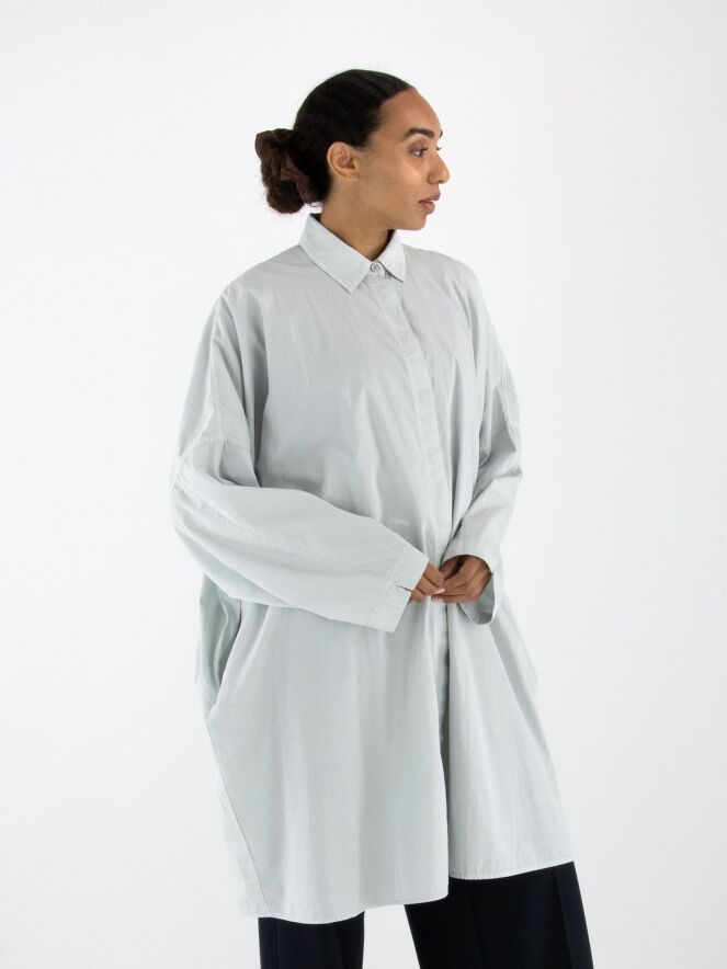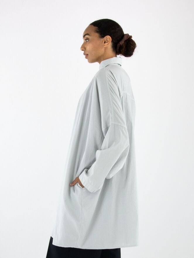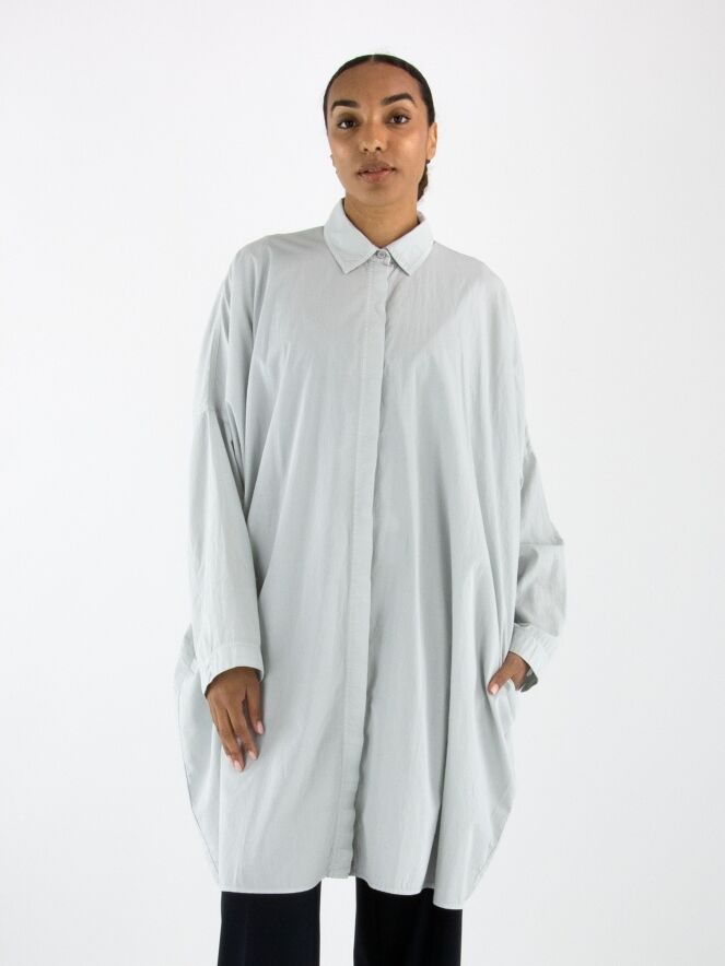 Weit geschnittene, lange Bluse von Rundholz Black Label in Hellgrau. Sie verfügt über eine verdeckte Knopfleiste und kann bei 30 Grad gewaschen werden.