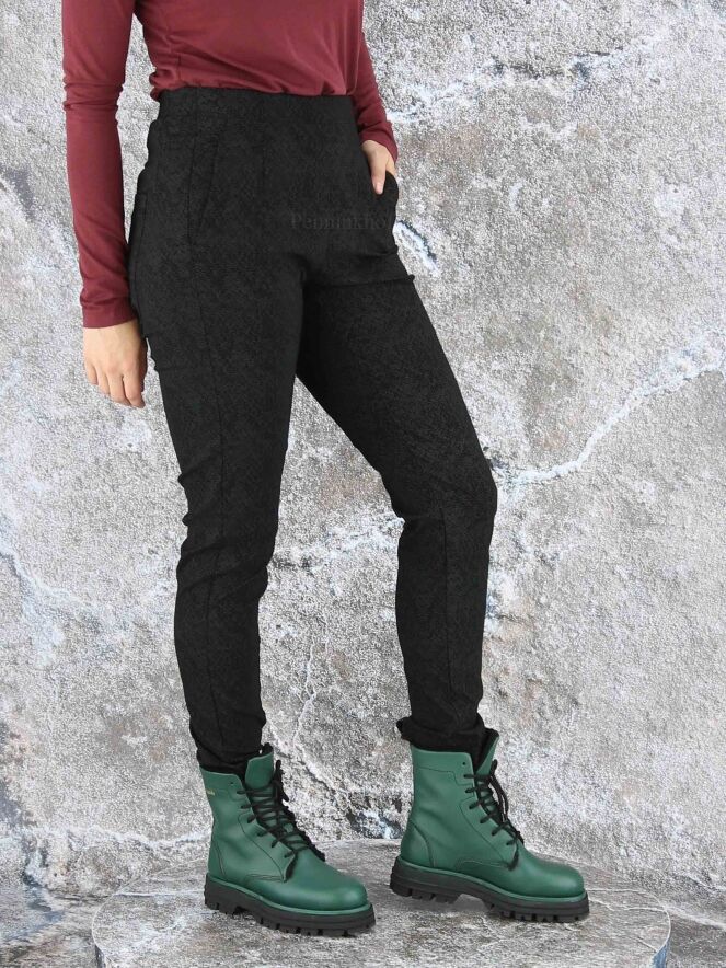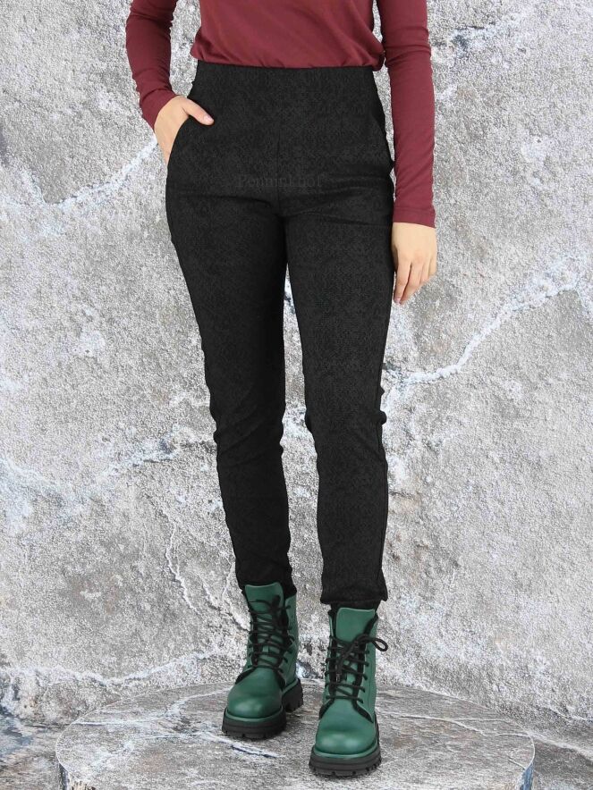 Eine Hose der Designermarke Rundholz Black Label mit Print in den Farben Grau und Schwarz. Der Bund ist dehnbar. Die Hose kommt mit Eingriffstaschen und kann bei 30 Grad gewaschen werden.