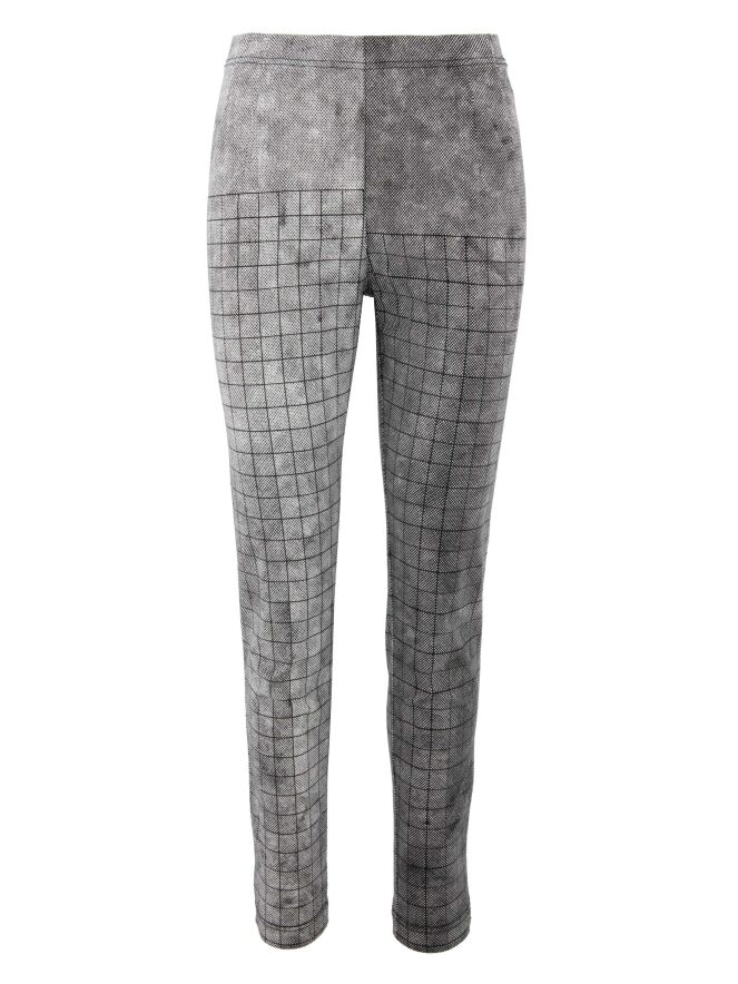 Eine Hose von Rundholz Black Label mit einem vielfältigen grafischen Karomuster in Schwarz und Weiß. In der Taille befindet sich ein schmaler elastischer Bund. Diese Hose kann bei 30 Grad gewaschen werden.