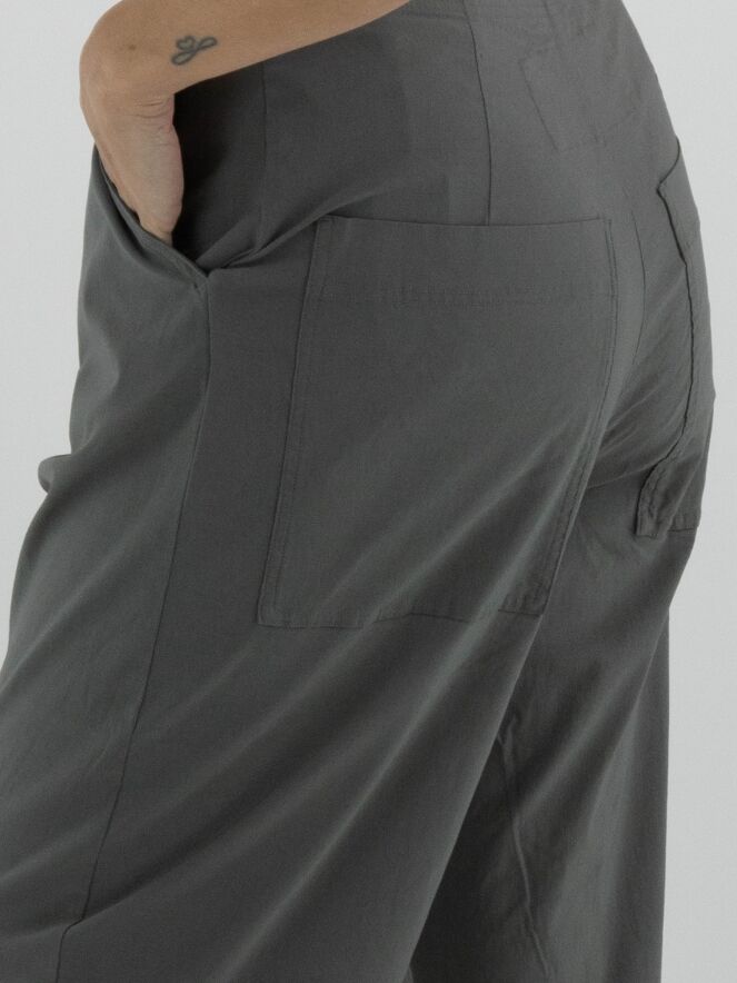 Eine weite Hose von Rundholz Black Label in Grau. Der Bund ist elastisch und sorgt für zusätzlichen Tragekomfort. Die Hose ist mit praktischen Eingrifftaschen ausgestattet und kann bei 30 Grad gewaschen werden.