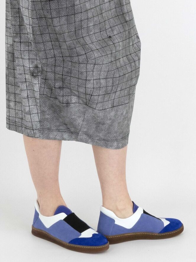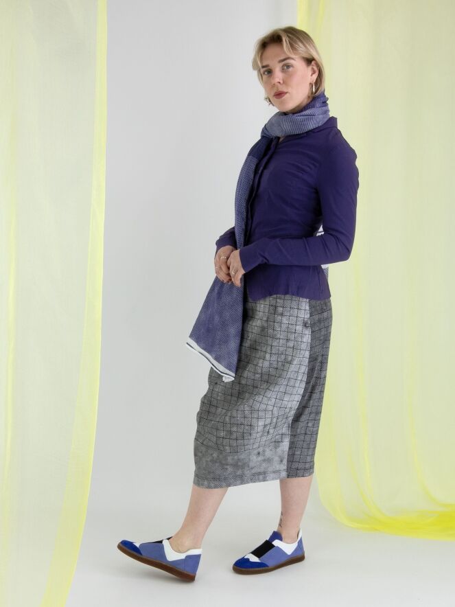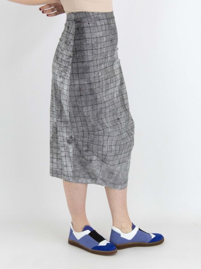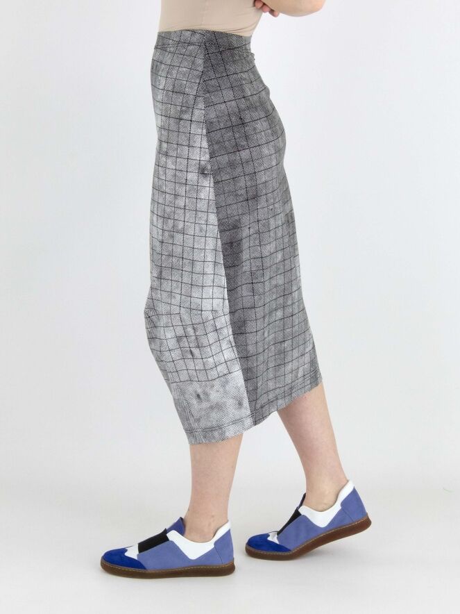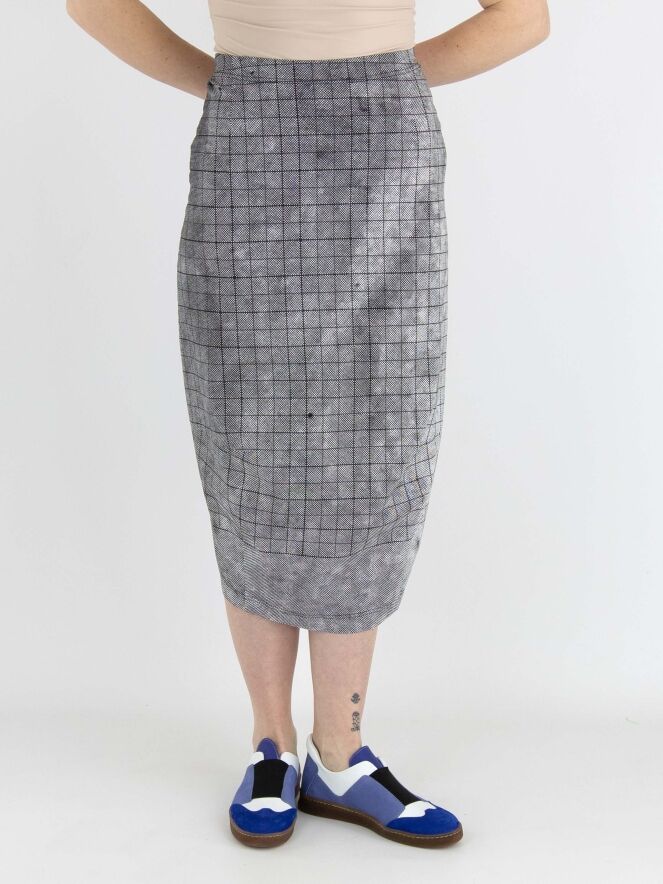 Ein Rock von Rundholz Black Label mit einem vielfältigen grafischen Karomuster in Schwarz und Weiß. In der Taille befindet sich ein schmaler elastischer Bund. Dieser Rock kann bei 30 Grad gewaschen werden.