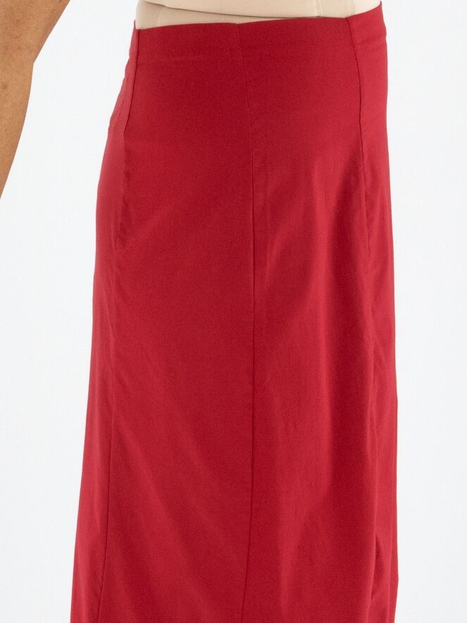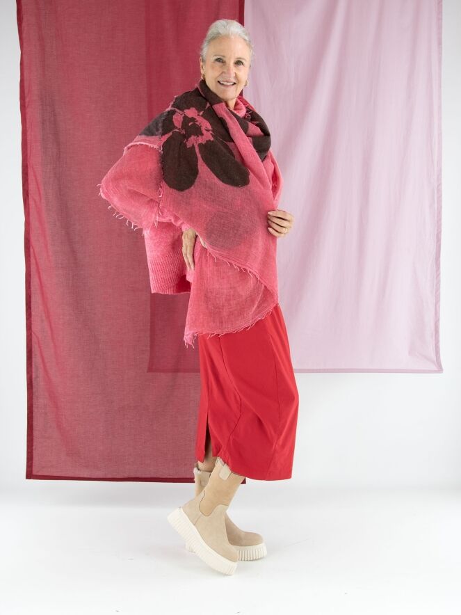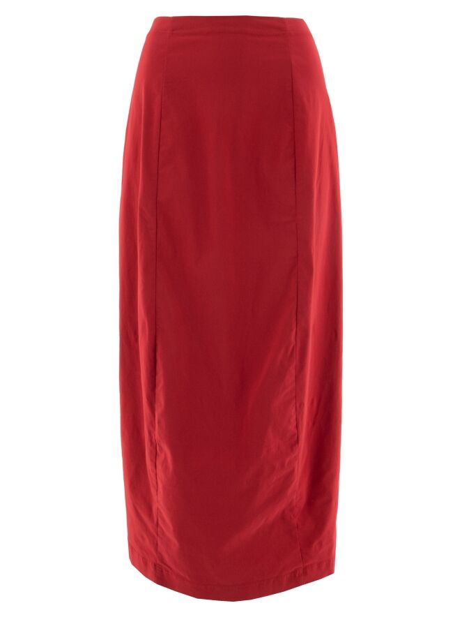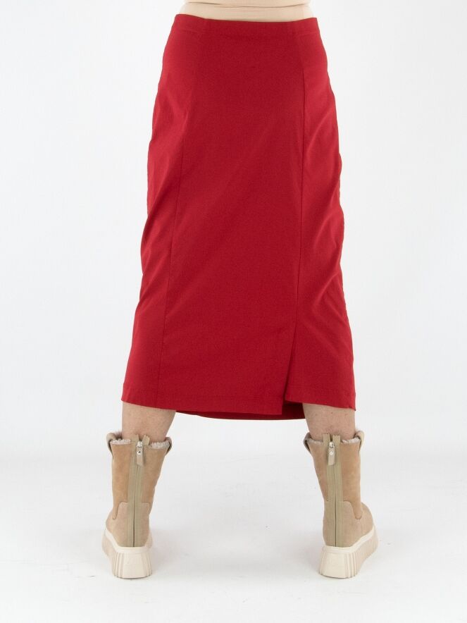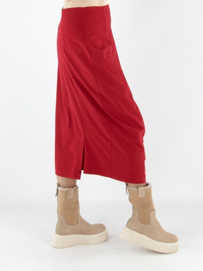 Ein Rock von Rundholz Black Label in Rot. Der Bund ist elastisch und bietet zusätzlichen Tragekomfort. Der Rock verjüngt sich zum Saum hin und ist ungefüttert, was ihm eine leichte, moderne Ausstrahlung verleiht. Dieser Rock kann bei 30 Grad gewaschen werden.