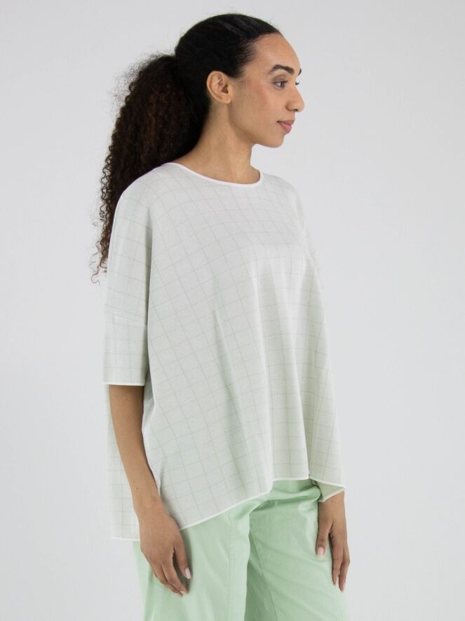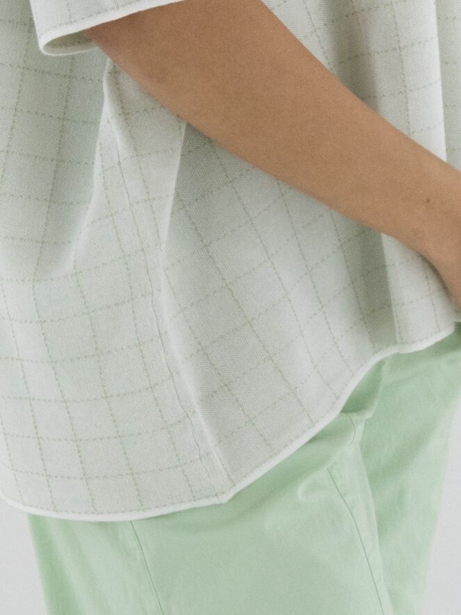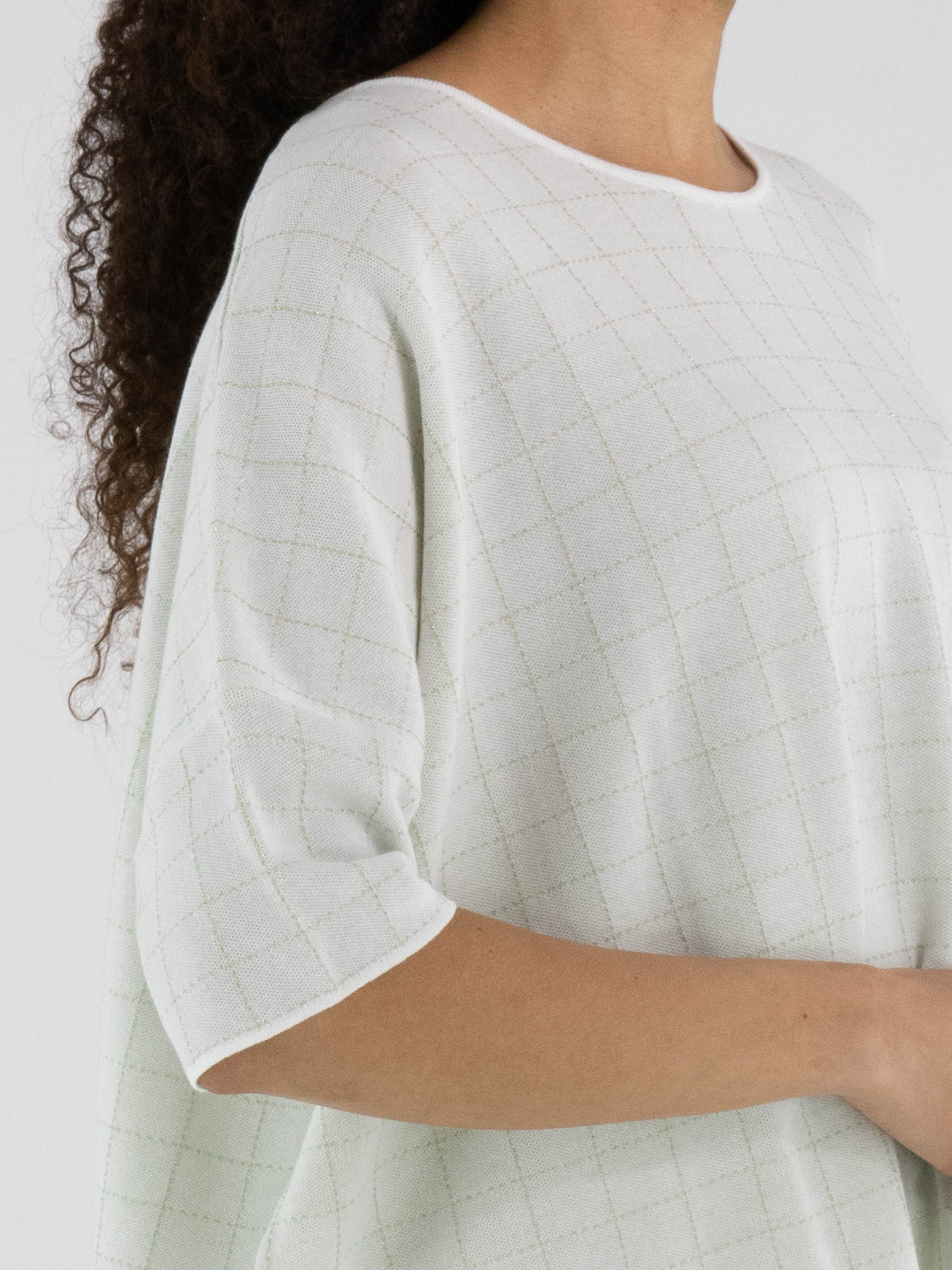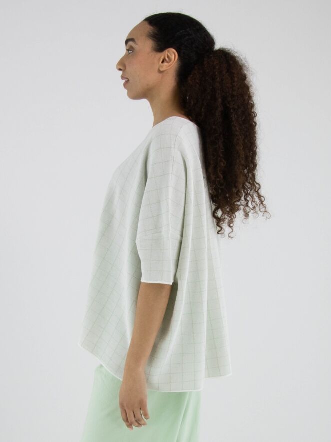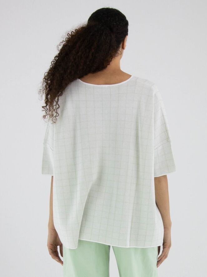 Weit geschnittener Pullover von Rundholz Black Label in einem eleganten Cremeweiß. Ein dezent eingewebtes Blockmuster mit Goldfaden verleiht dem Modell einen feinen Schimmer und eine luxuriöse Note. Mit kurzen Ärmeln und Rundhalsausschnitt gearbeitet, kann dieses exklusive Designerstück bei 30 Grad gewaschen werden.