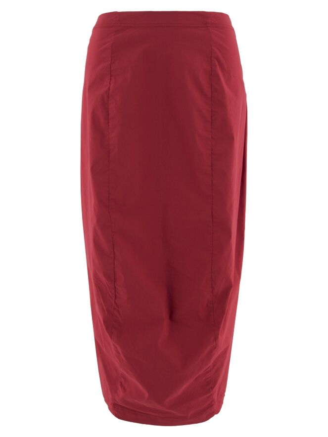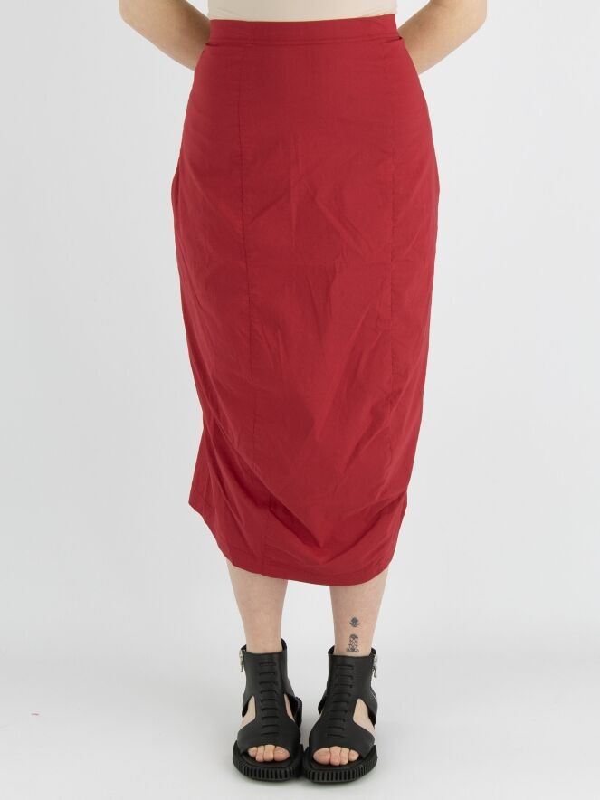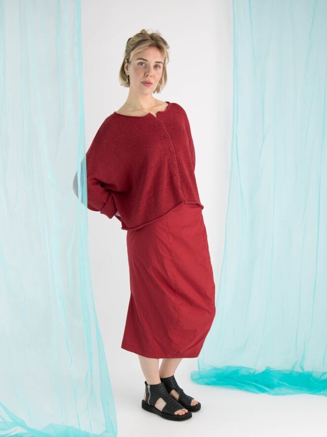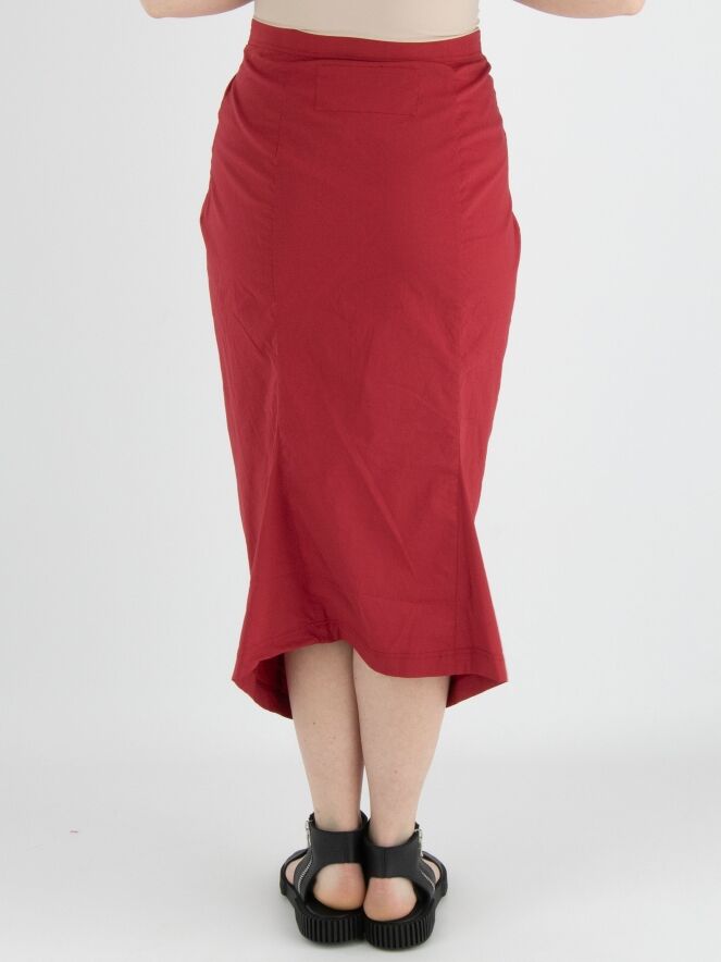 Ein Rock von Rundholz Black Label in Rot. Der Rock hat einen elastischen Bund. Er läuft nach unten hin schmal zu und ist ungefüttert. Dieser Rock kann bei 30 Grad gewaschen werden.