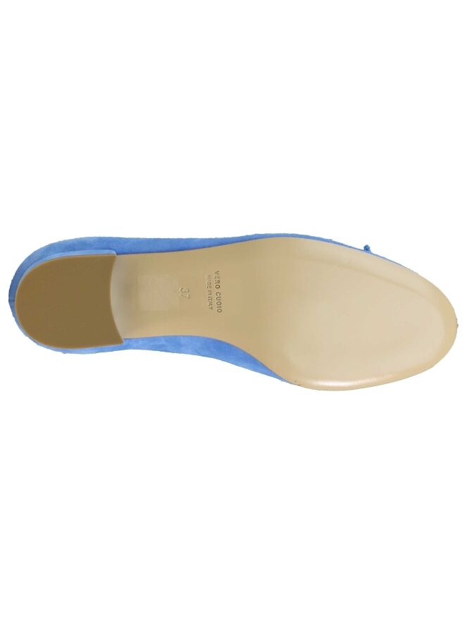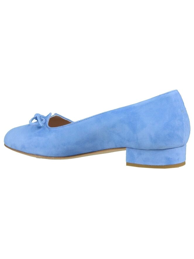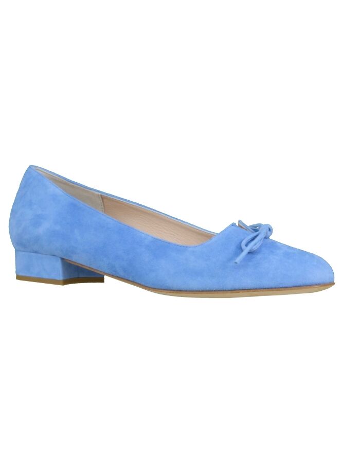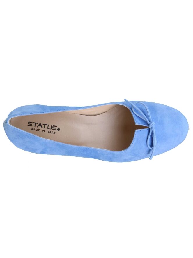 Pastellblauer Ballerina der Designerschuhmarke Status. Eine Schleife verziert den Vorfuß. Das Innenfutter ist aus Leder.